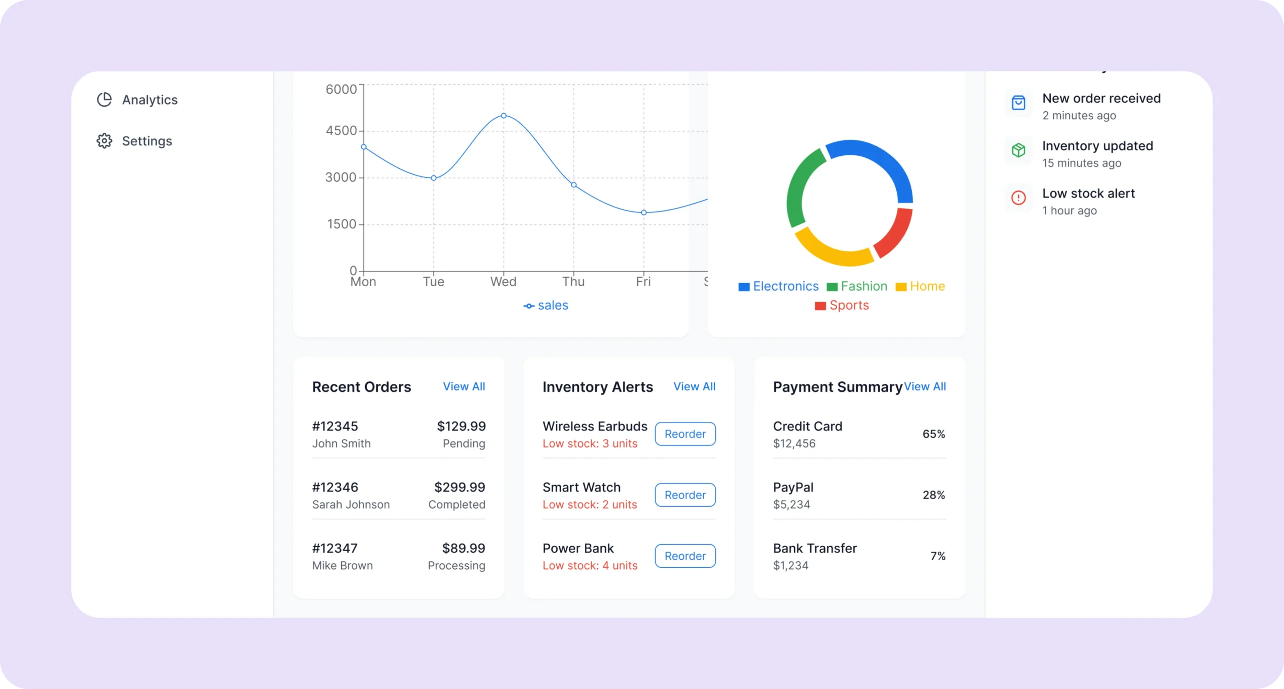 Manage catalog, inventory, orders, and payments