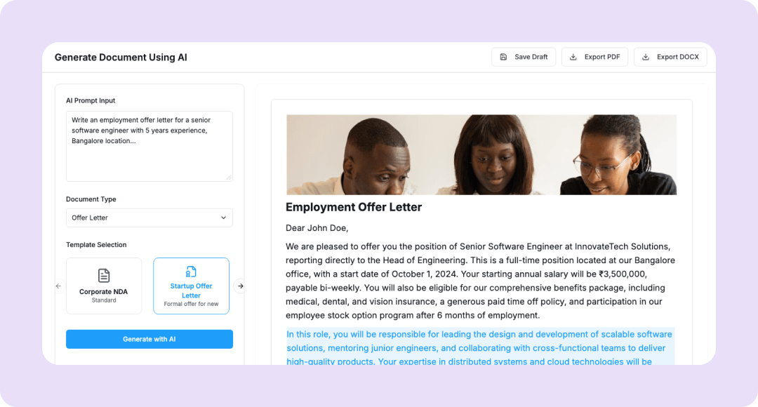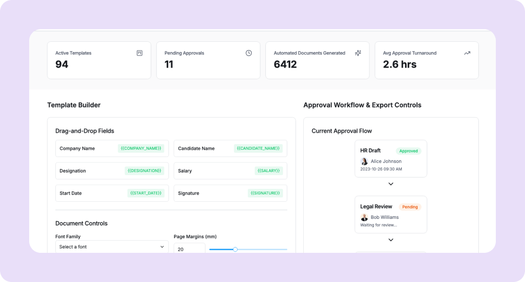 HR Teams Generate offer letters, appointment orders, and onboarding docs