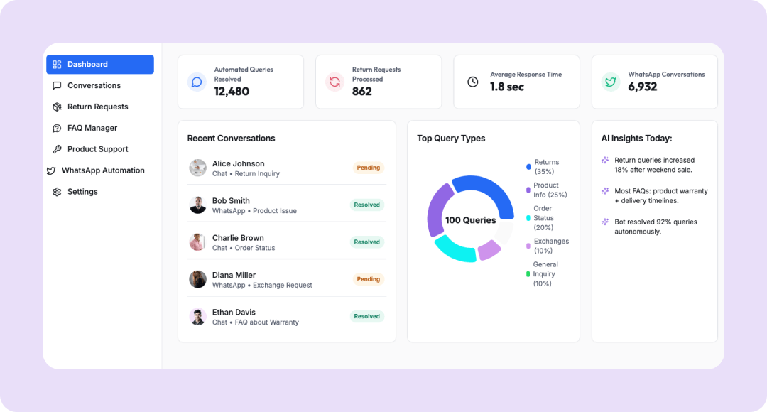 | Operations Teams | Track support trends and recurring customer issues in real time |
