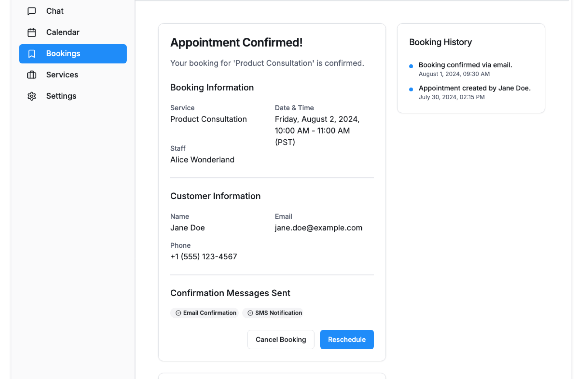 - Confirm & Notify – Booking confirmations and reminders sent automatically