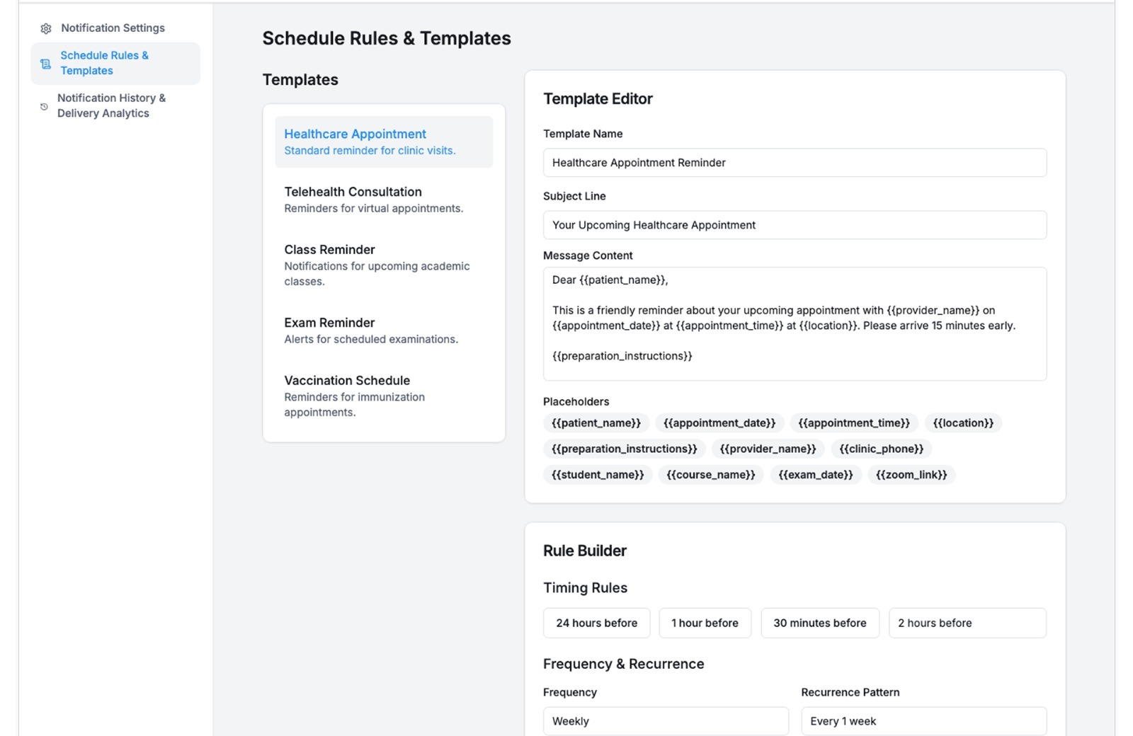 - Set Reminder Rules – Choose timing and channels