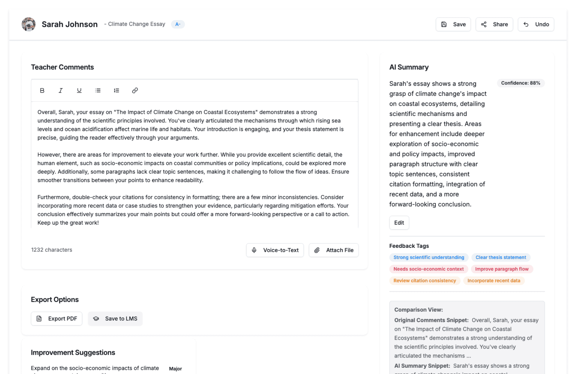 | Teachers & Instructors | Reduce time spent rewriting feedback |