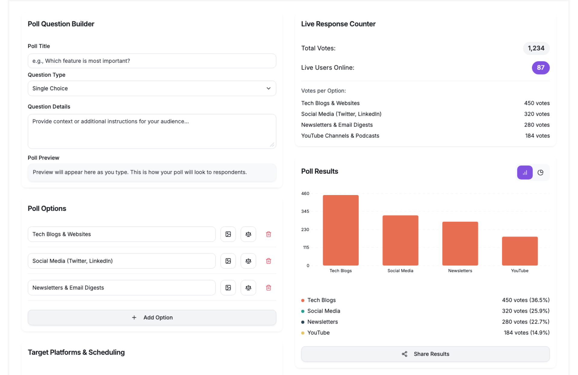 The Audience Poll Bot by Kriatix is an AI-powered engagement tool that helps brands, educators, and teams collect real-time audience feedback through interactive polls. Whether you’re hosting events, running webinars, gathering customer opinions, or engaging communities, this bot makes polling simple, fast, and actionable.