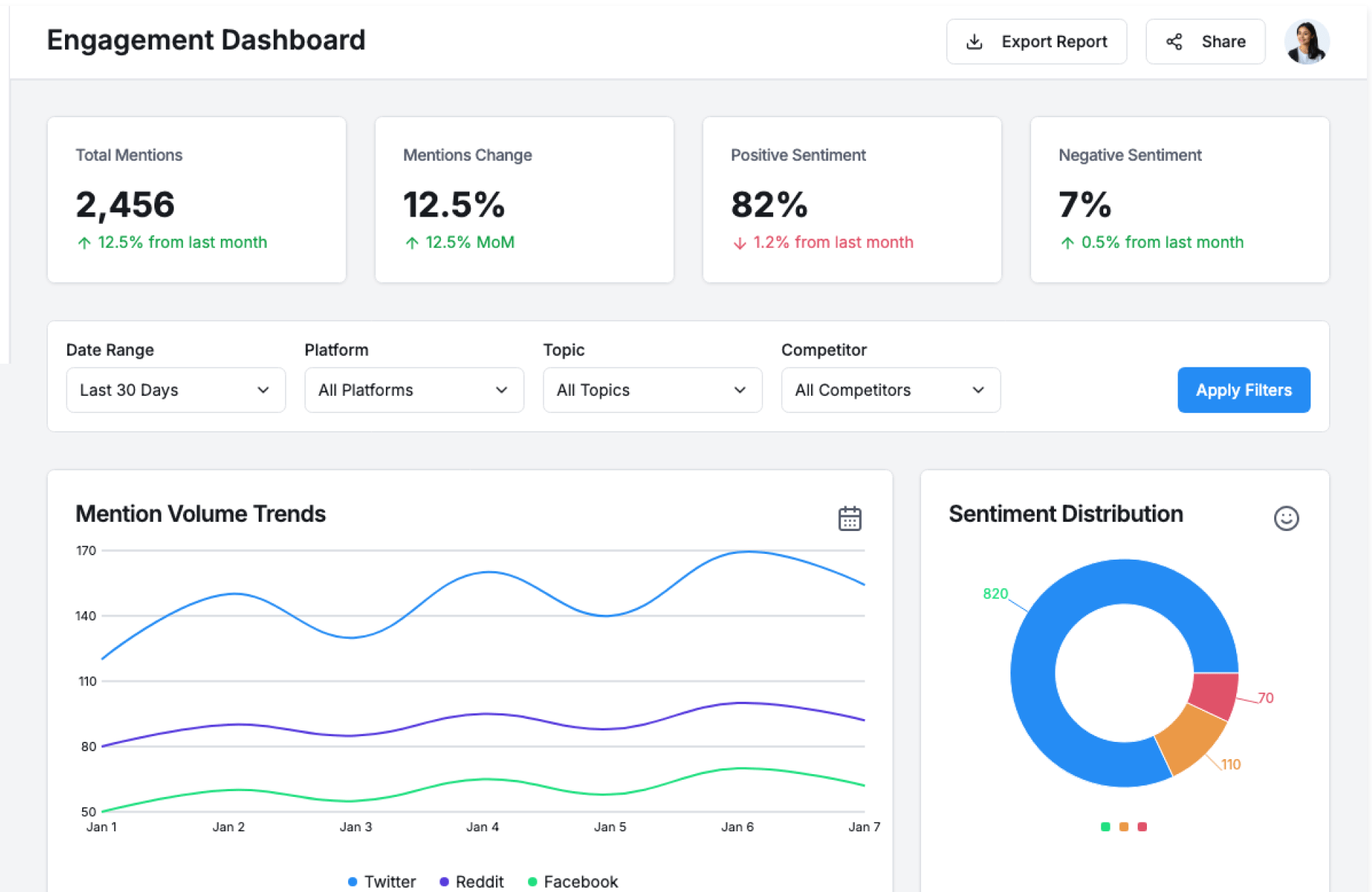 - Monitor Mentions – Chatbot tracks conversations continuously