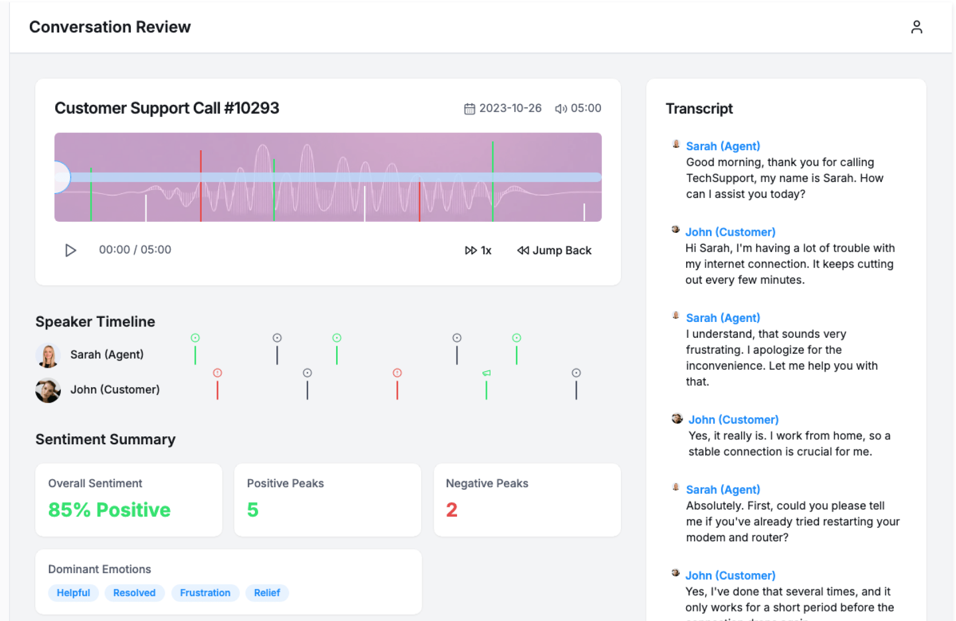 The Call Sentiment Dashboard is a ready-to-use analytics view that evaluates call transcripts and audio signals to determine sentiment and emotional tone. It aggregates insights across agents, queues, time periods, and topics—making call quality measurable and manageable.