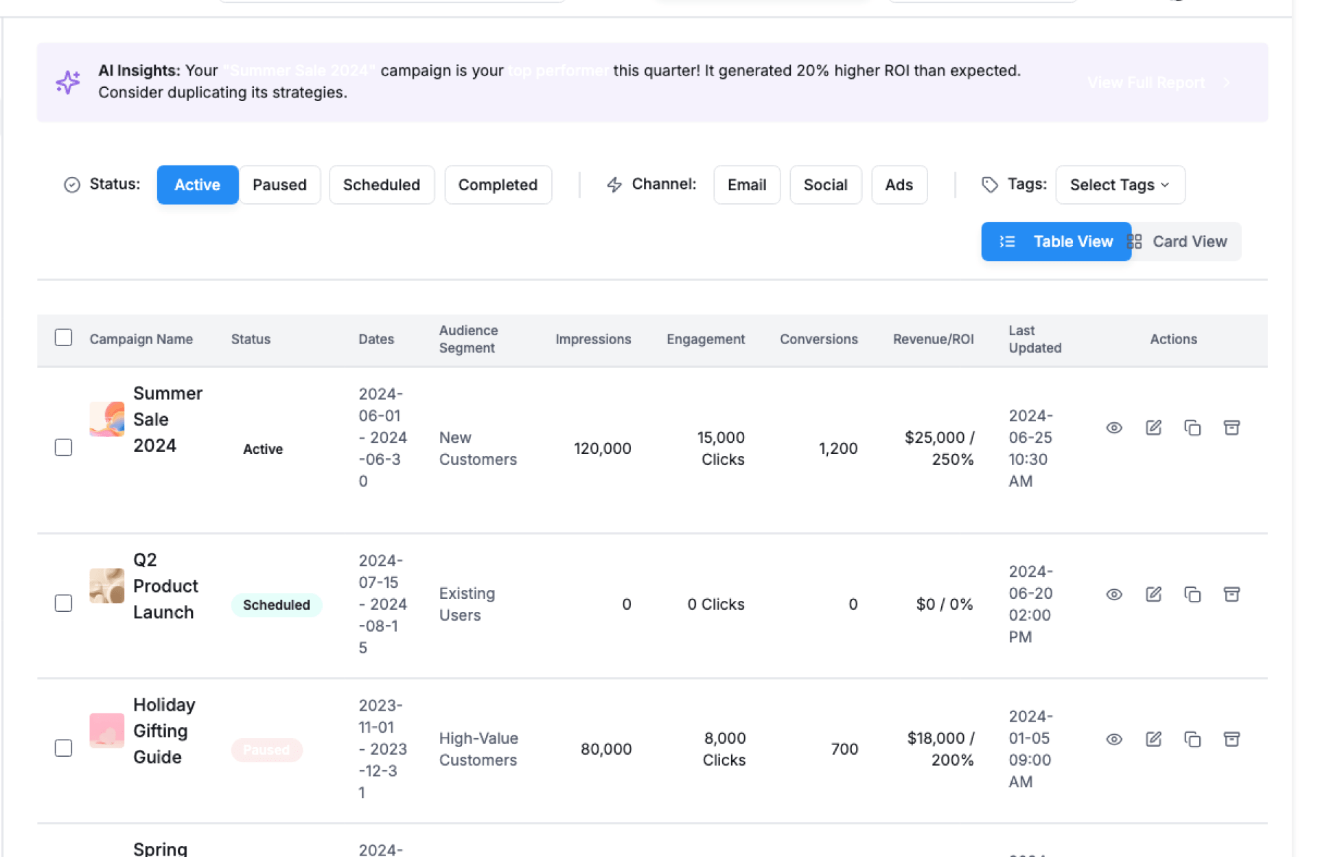 - Identify top-performing and underperforming campaigns