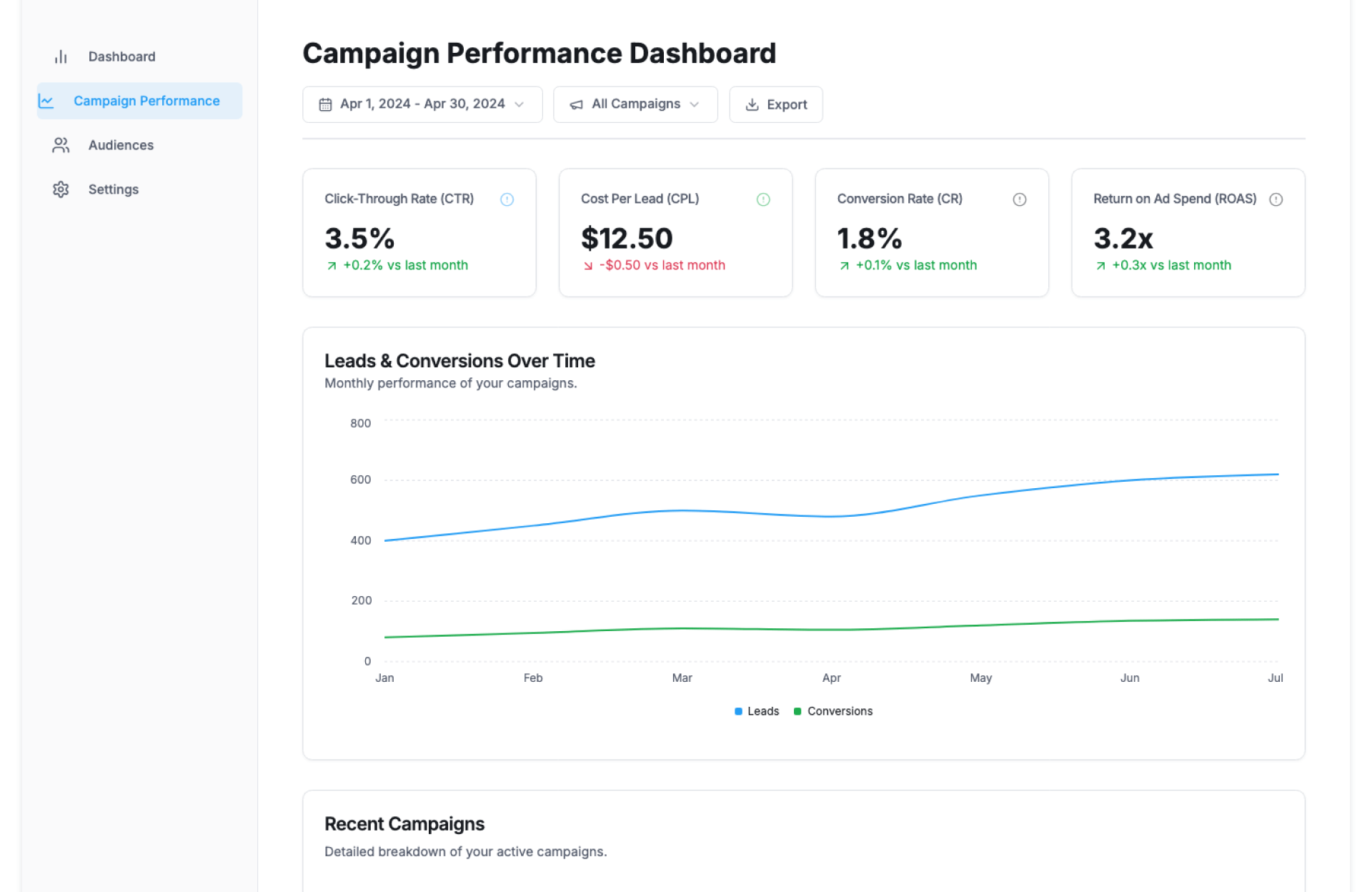 - Interactive campaign performance charts