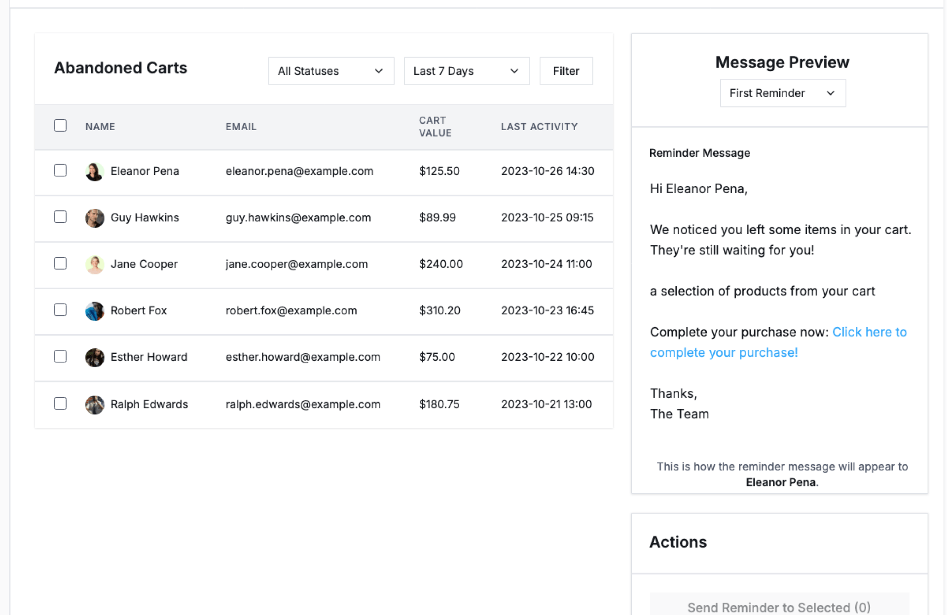 Send abandoned cart reminders.