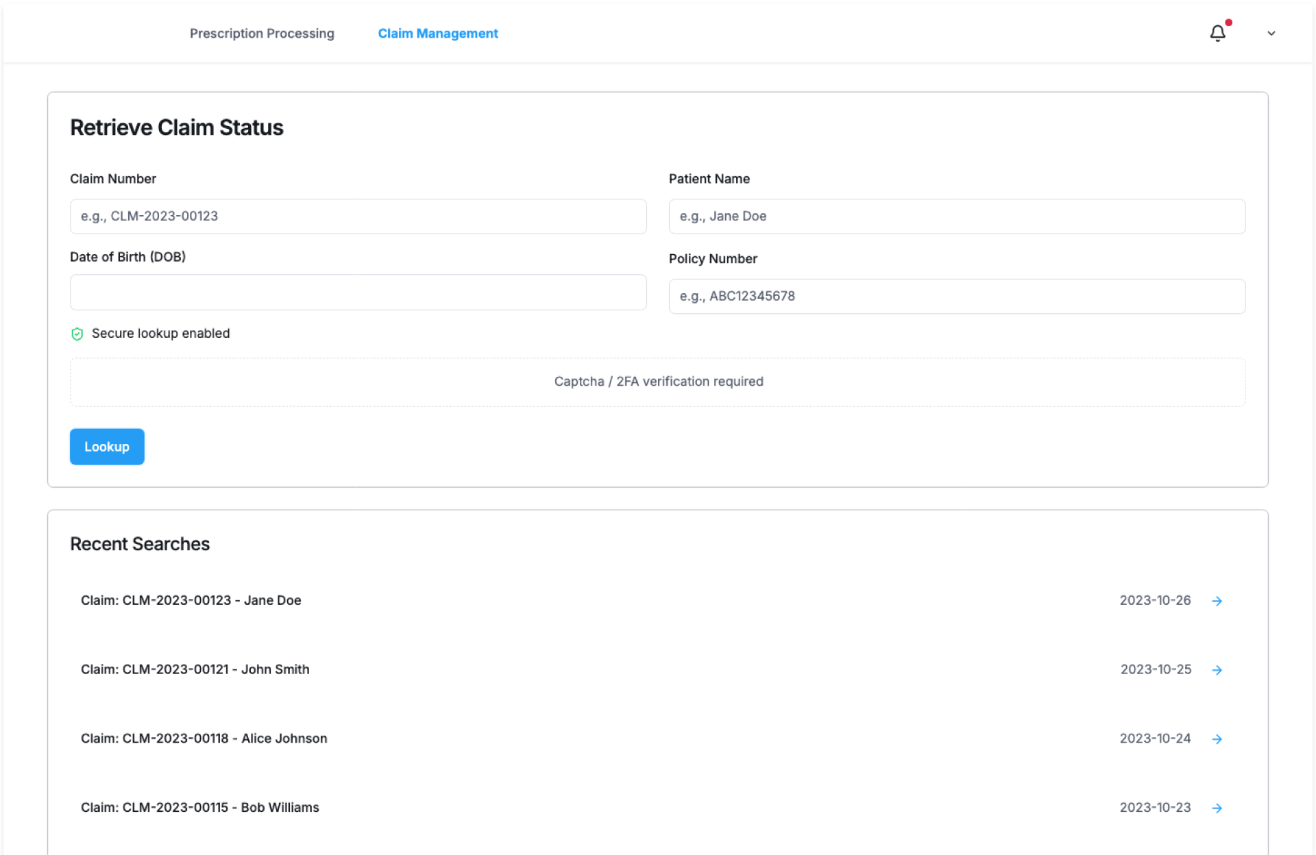 - Real-time claim status lookup
