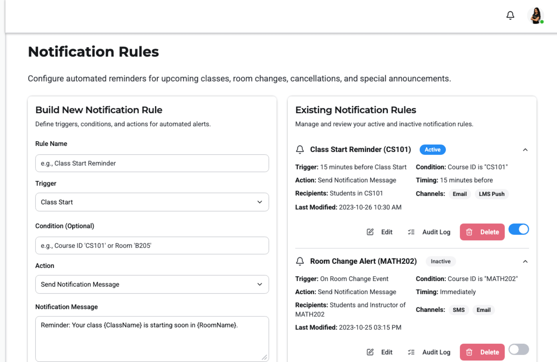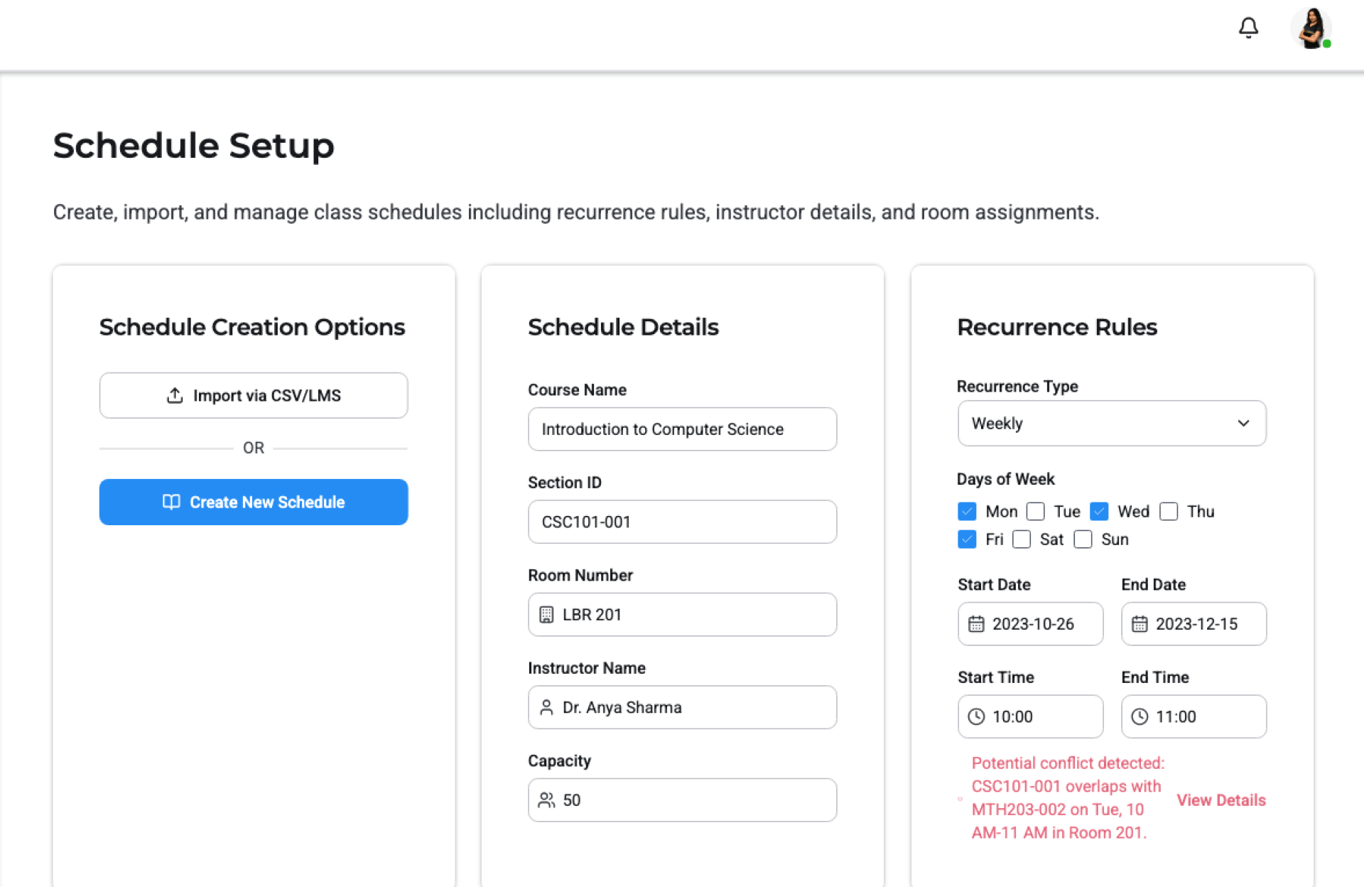 - Sync Schedule – Connect LMS/calendar or upload schedule