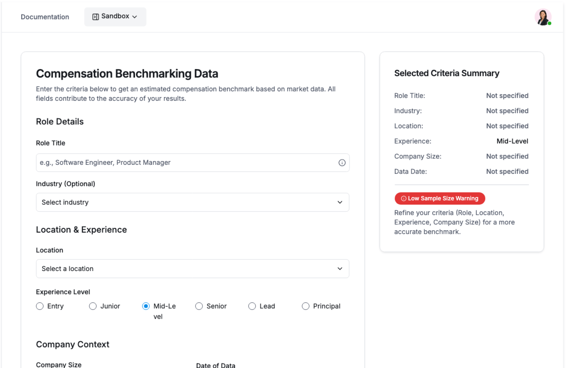 - Select Comparison Criteria – Choose roles, locations, levels, or teams