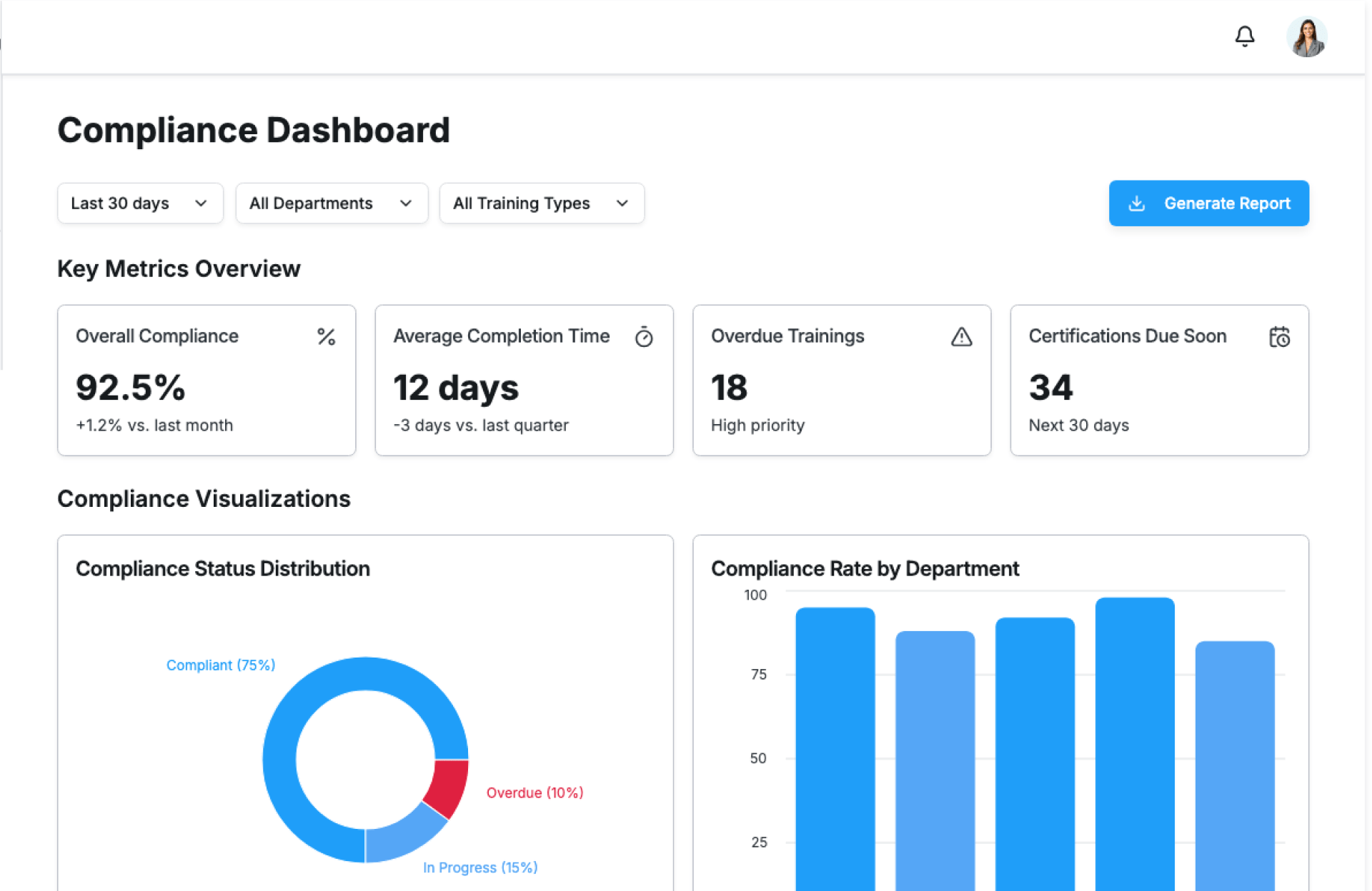 | Compliance Teams | Monitor training adherence and reduce risk |