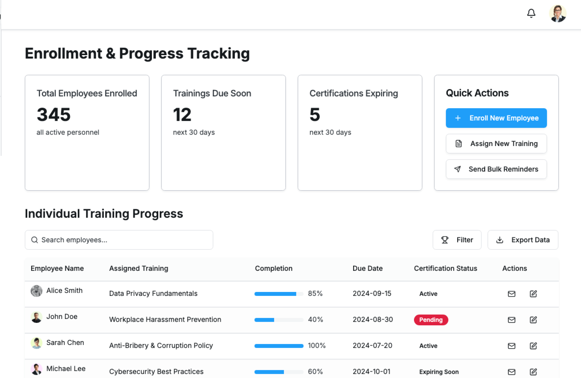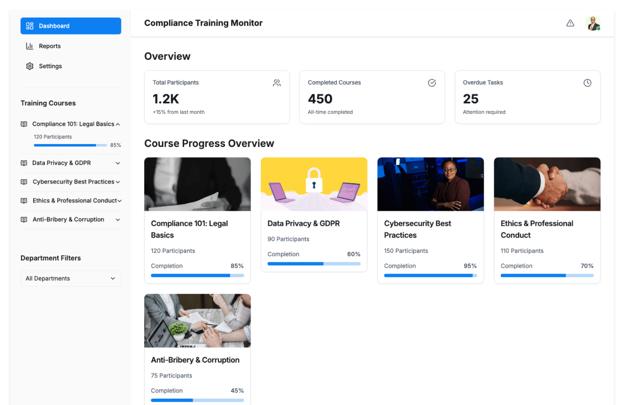 | Compliance Teams | Monitor training adherence and reduce risk |