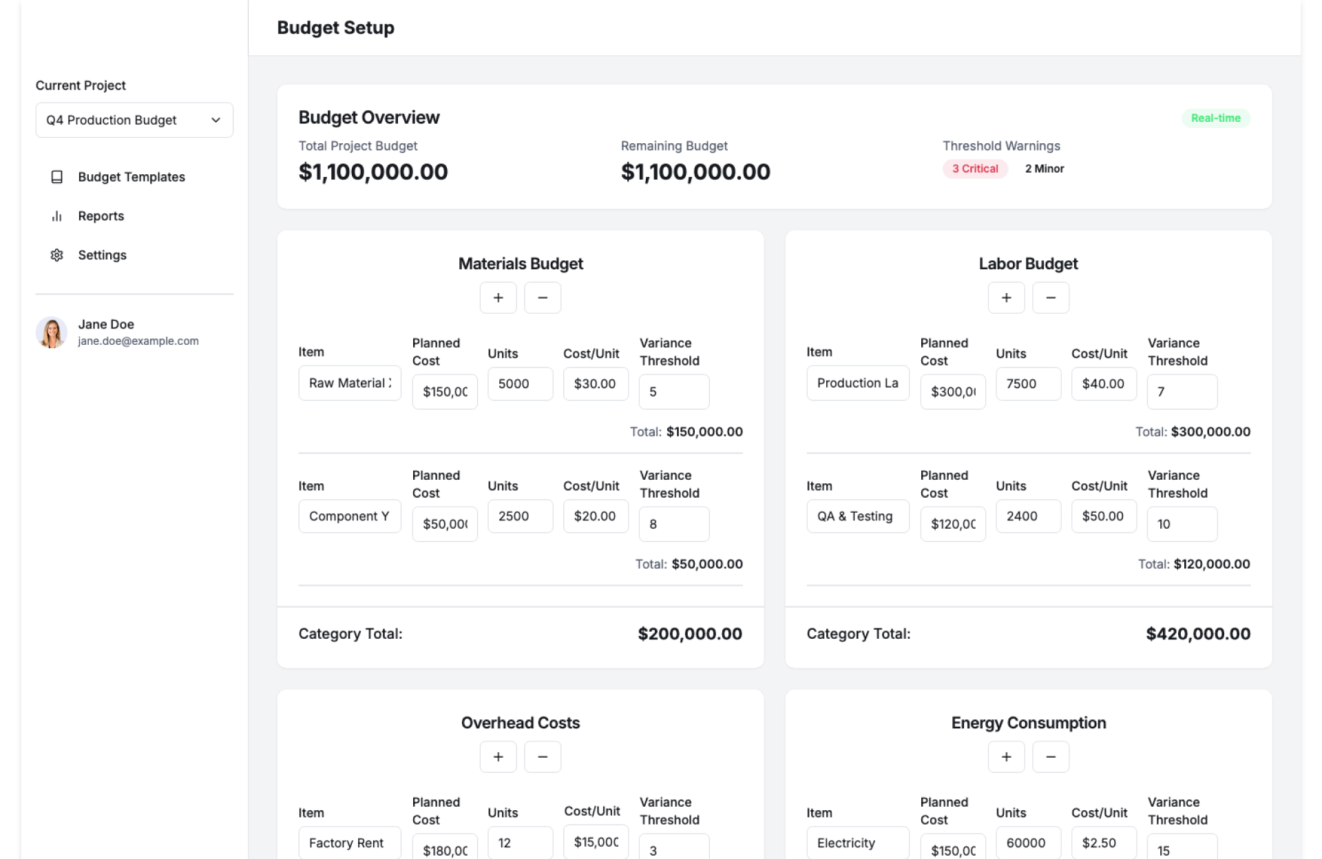 - Load Budget Data – Enter or import planned budgets