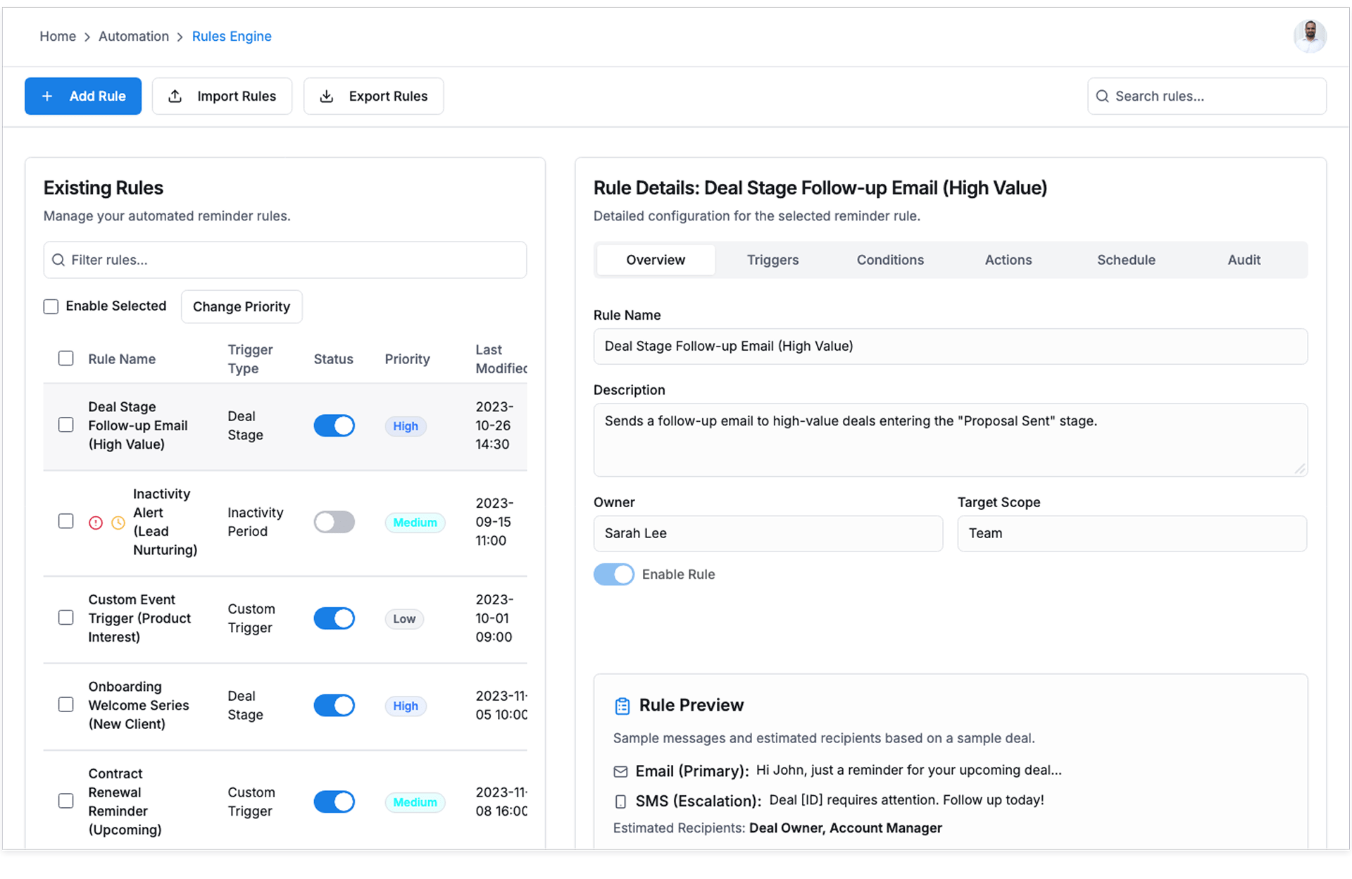 - Automate Alerts – Trigger reminders for tasks and follow-ups.
