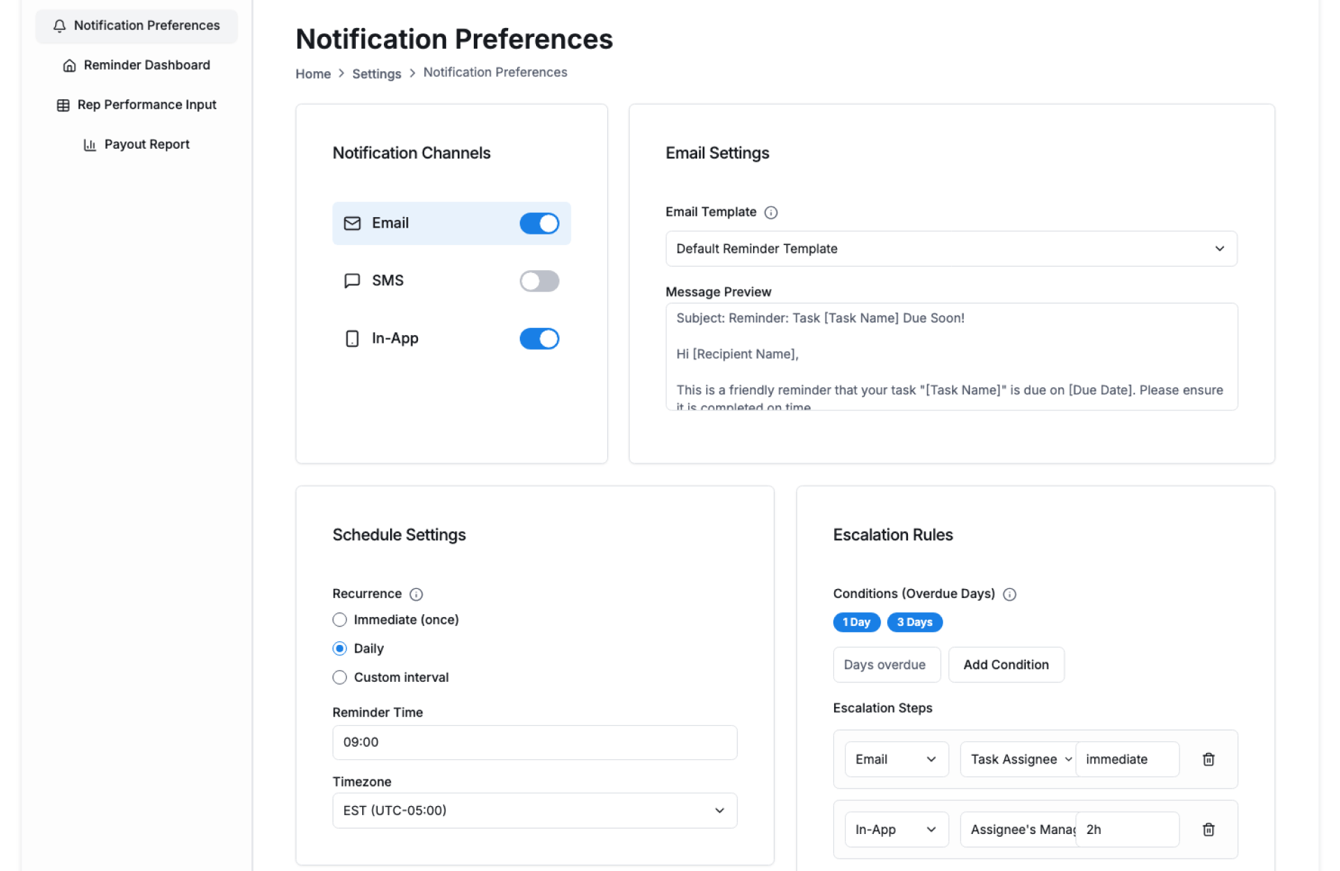 - Set Up Reminders – Configure tasks, calls, and meetings.