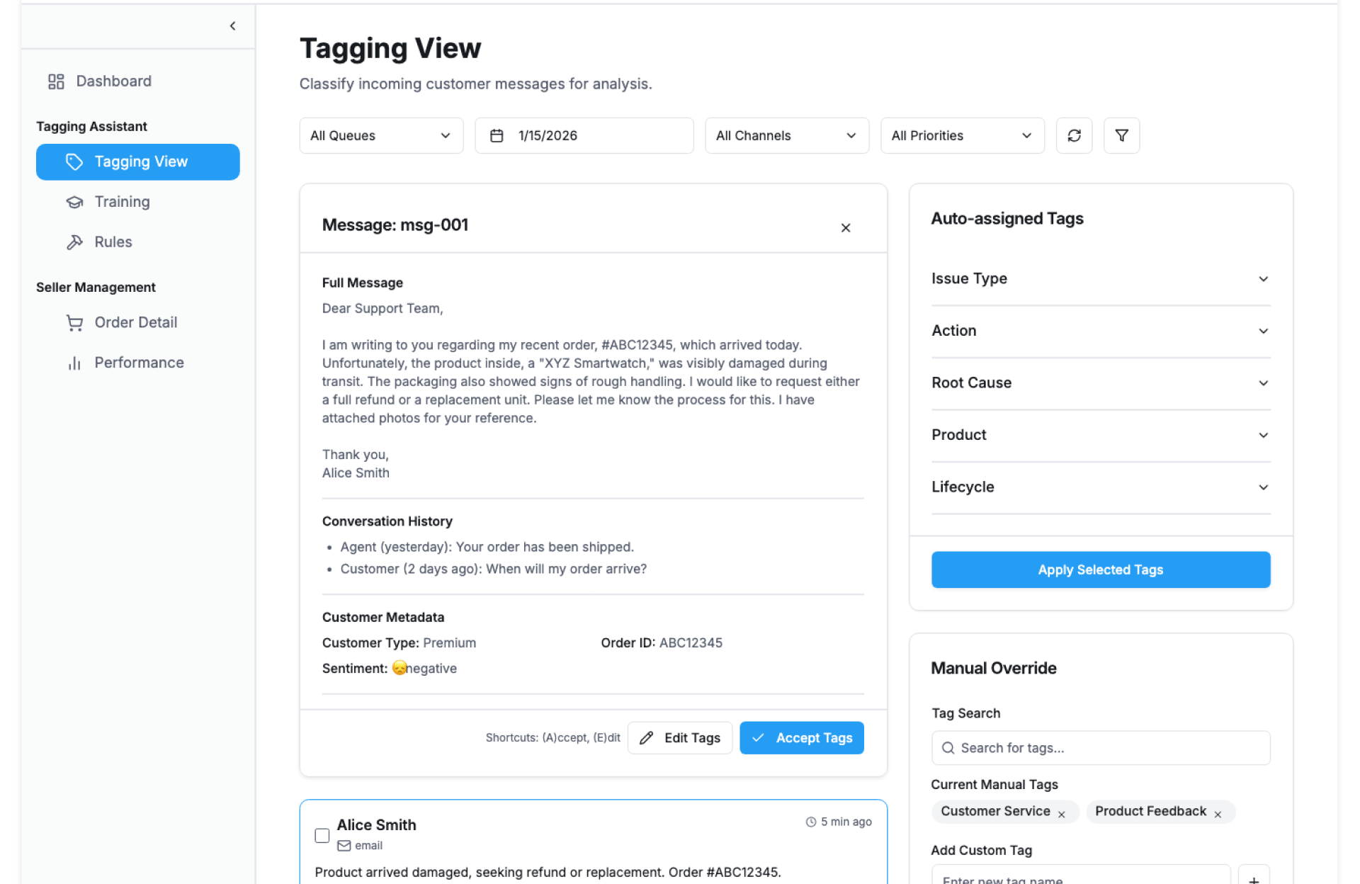 See Customer Query Tagging Assistant In Action
