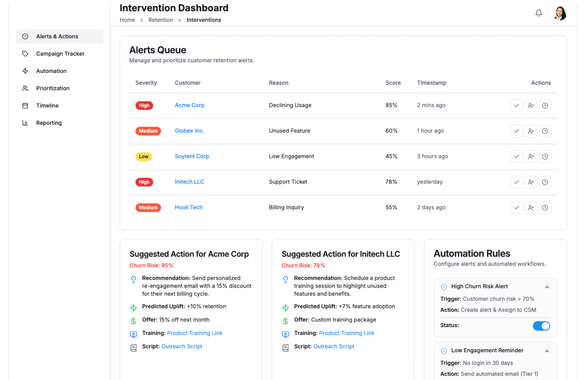 - Automate follow-ups and retention actions