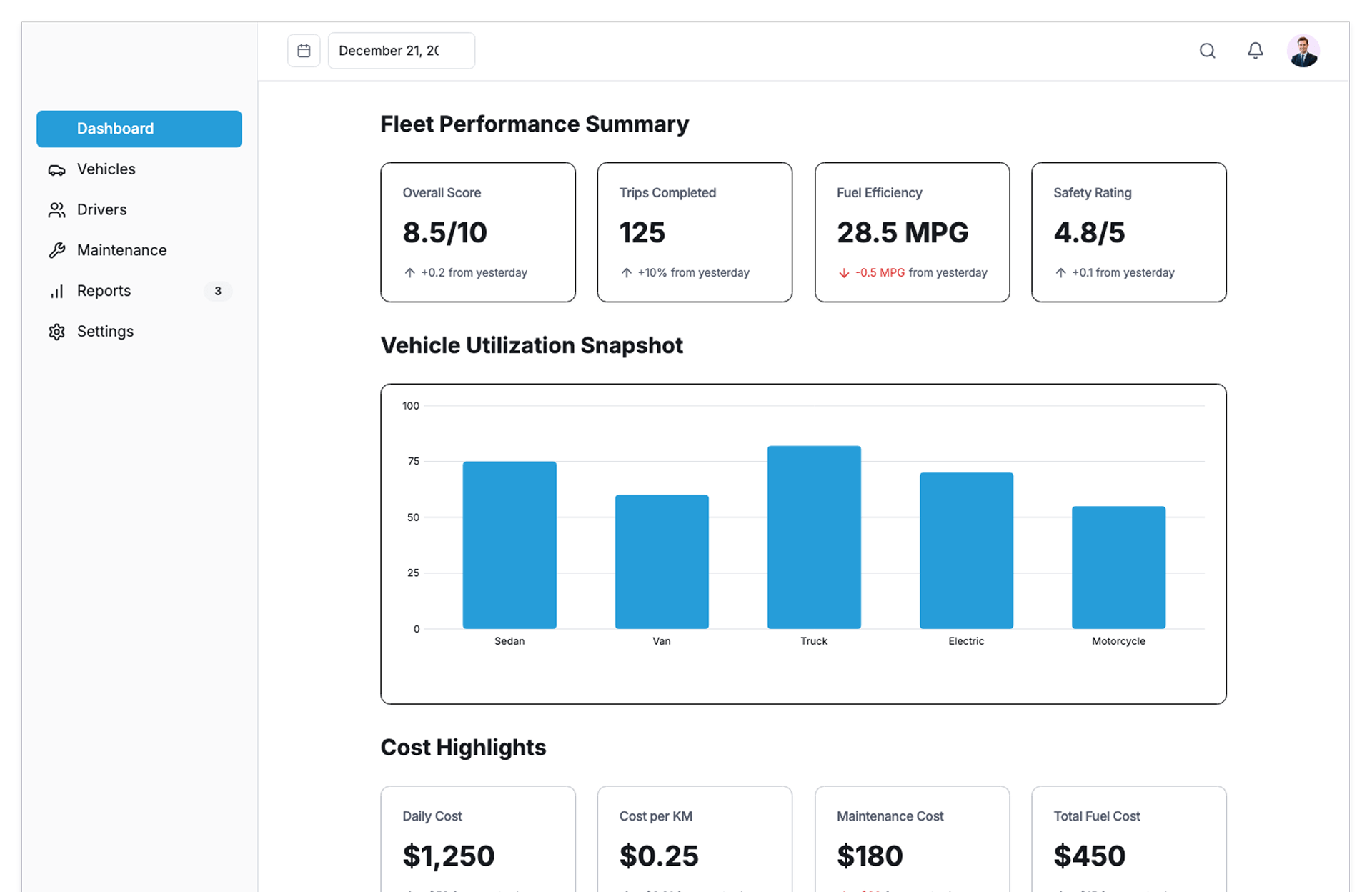 | Fleet Managers | Monitor vehicle availability, utilization, and issues daily |
