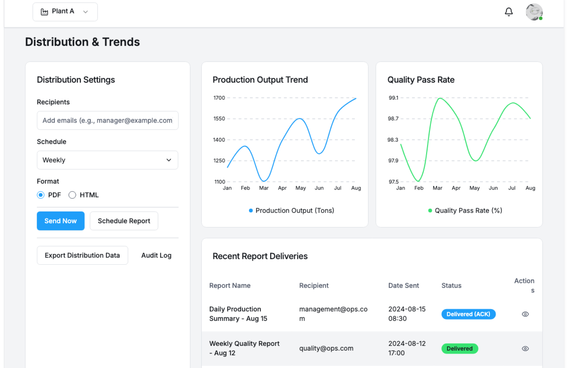 The Daily Production Report Generator by Kriatix helps manufacturing teams compile clear, structured daily production reports with minimal manual effort. It consolidates output, downtime, quality, and shift data into ready-to-share reports supporting faster reviews and informed decision-making.