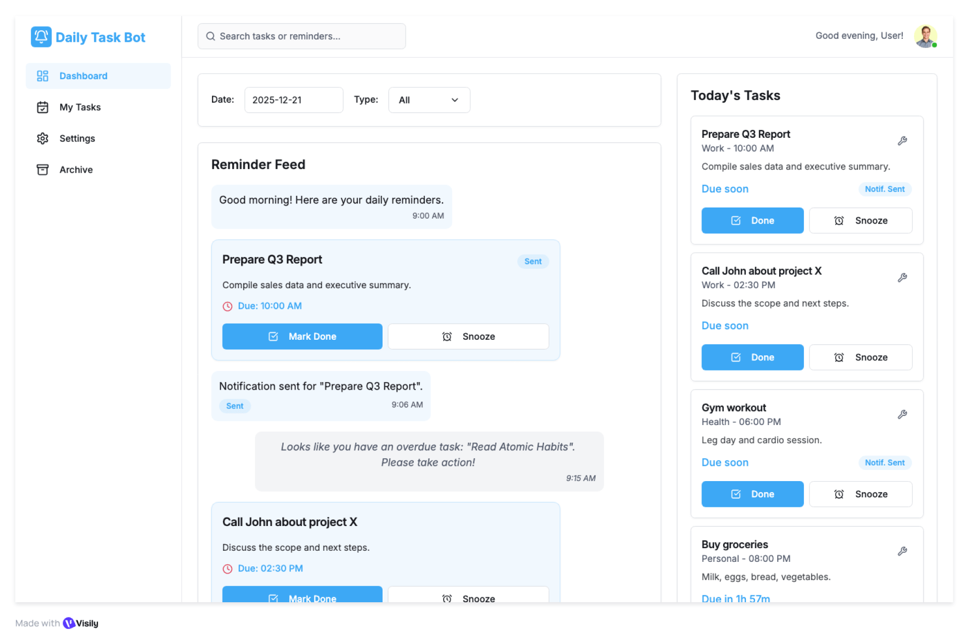 - Create Tasks – Add tasks with due dates, priorities, and recurrence