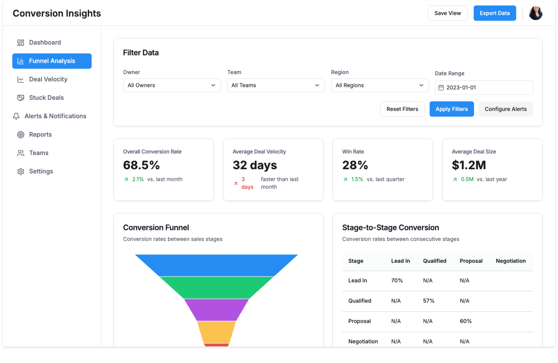 - Analyze Performance – Review conversion rates and stage duration