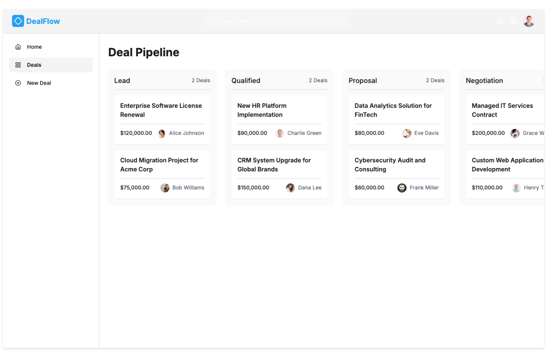 - Gain full visibility into every active deal