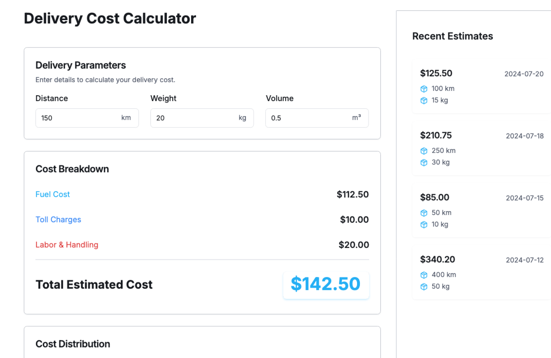 Delivery Cost Calculator