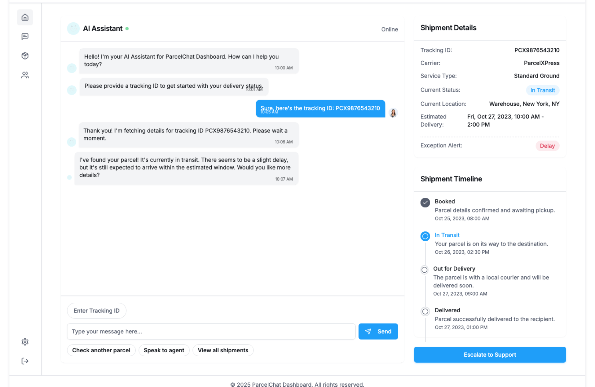 See Delivery Status Chatbot – Track parcel progress In Action