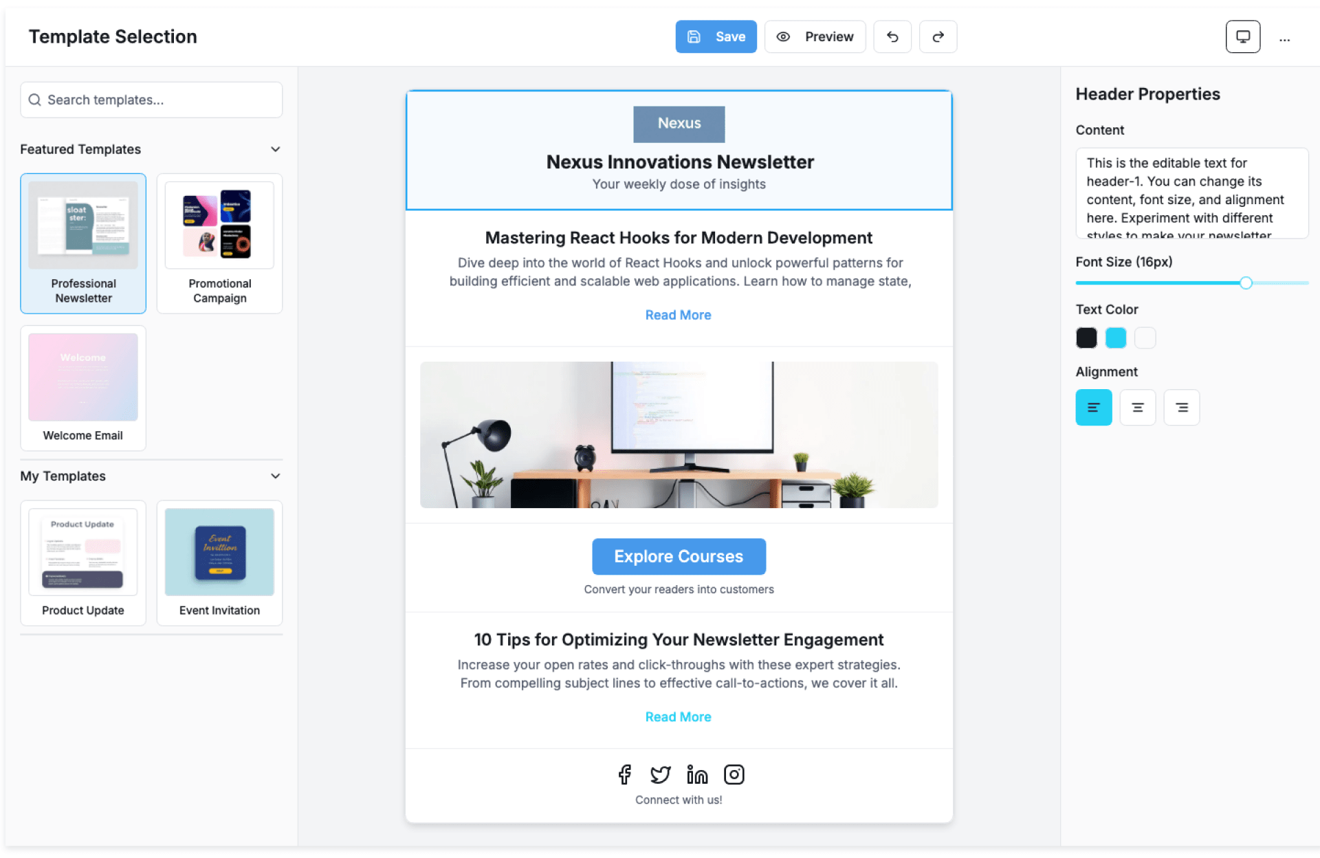 - Pre-built newsletter section structures