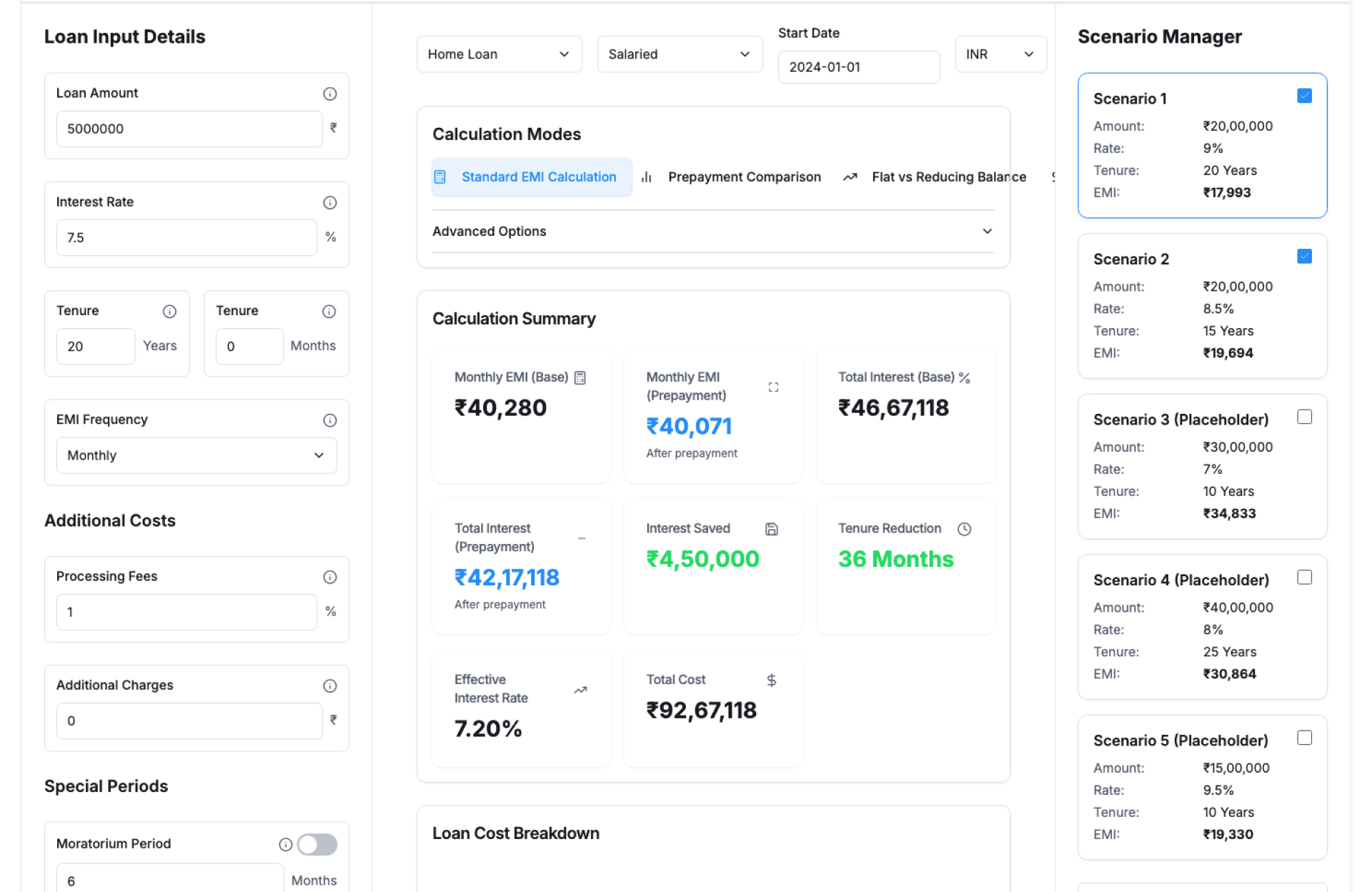 - Adjustable loan amount, tenure, and interest rate