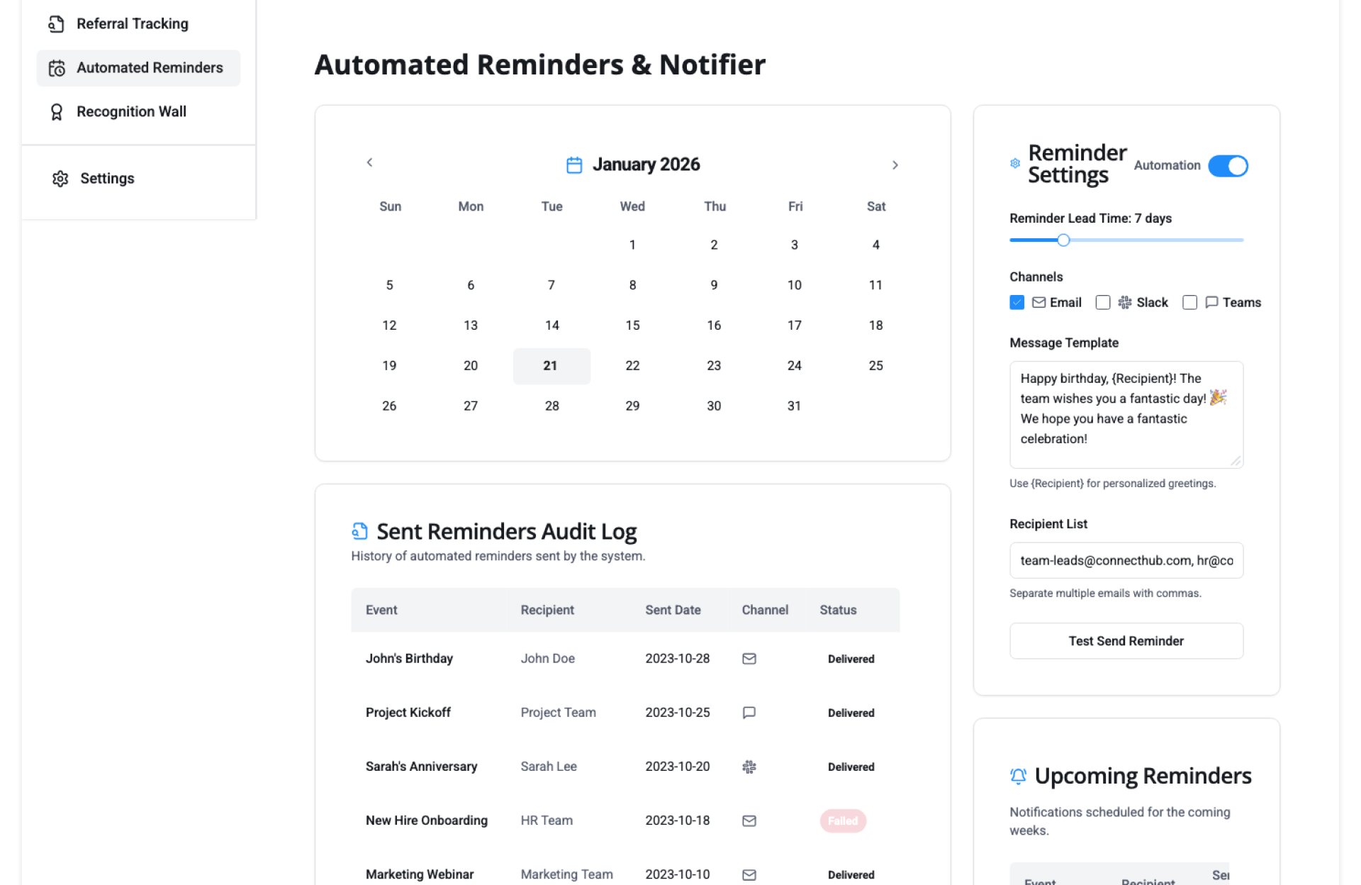 | HR Teams | Automate birthday, anniversary, and event reminders |