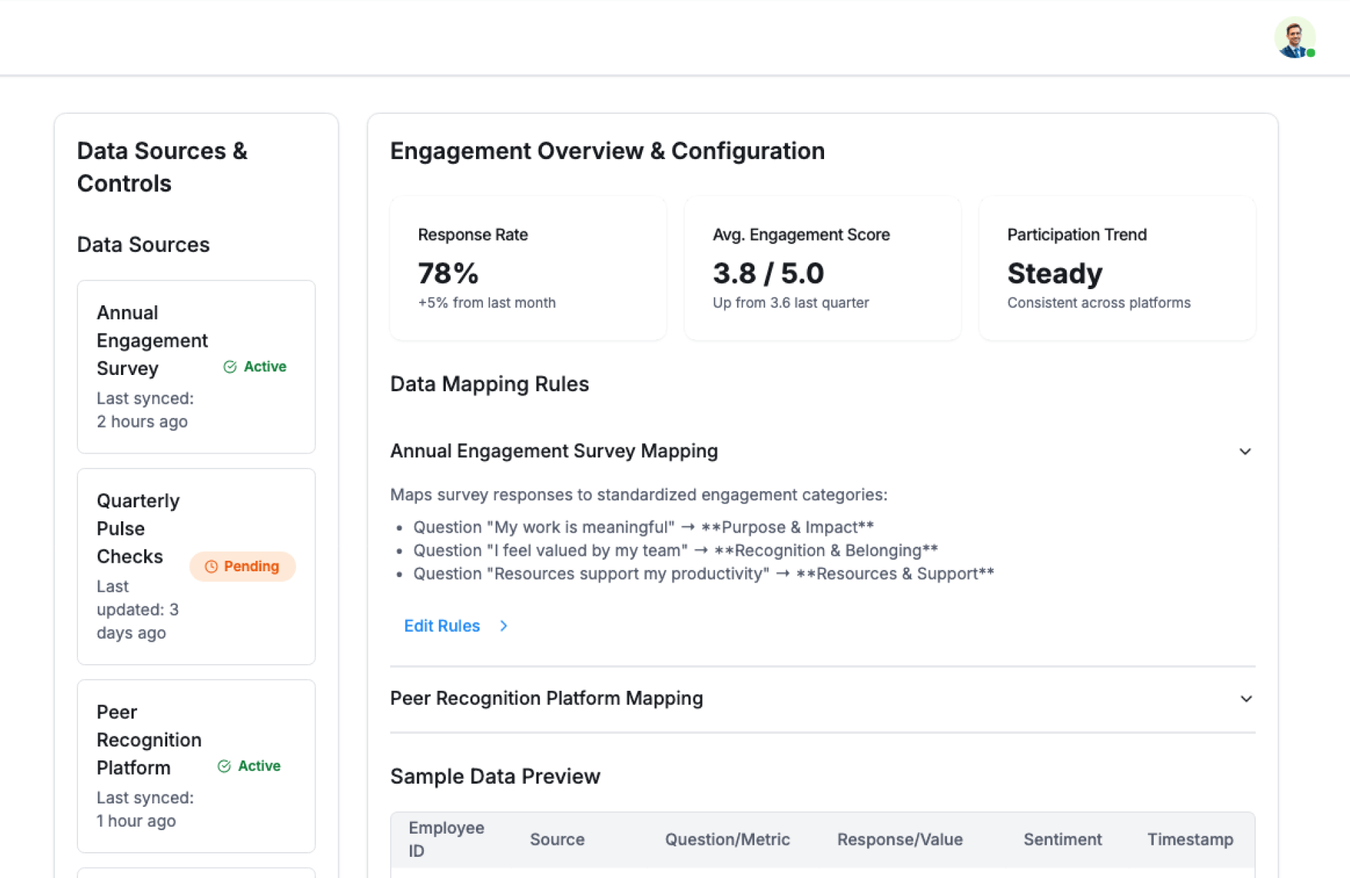 - Collect Engagement Data – Run pulse surveys or import feedback