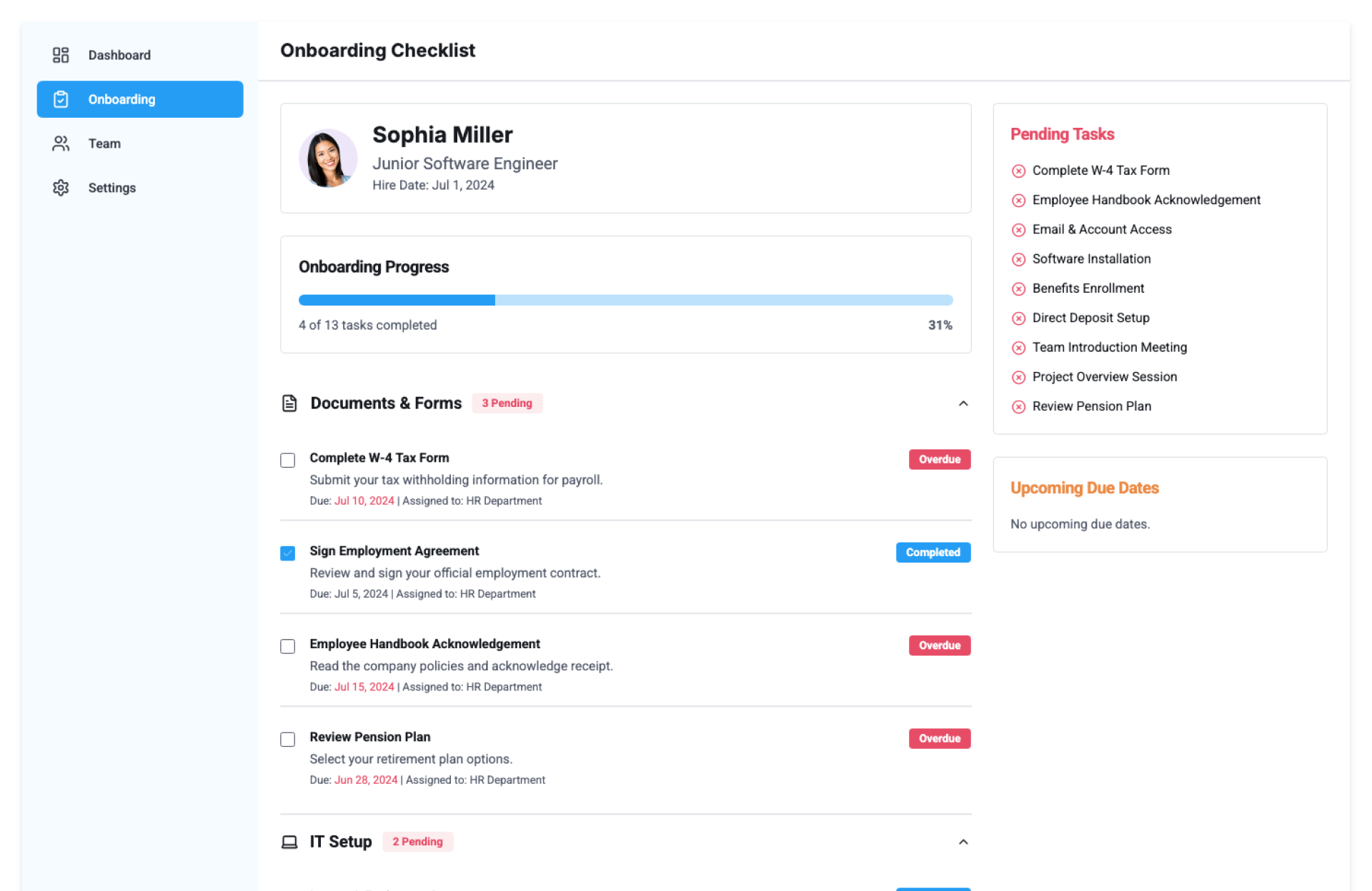 - Progress tracking for each new hire