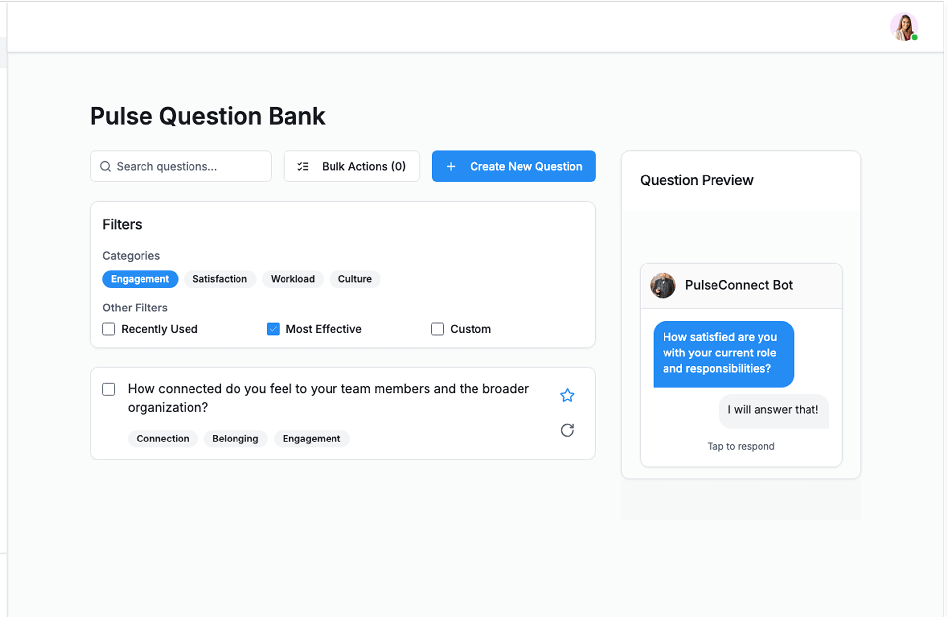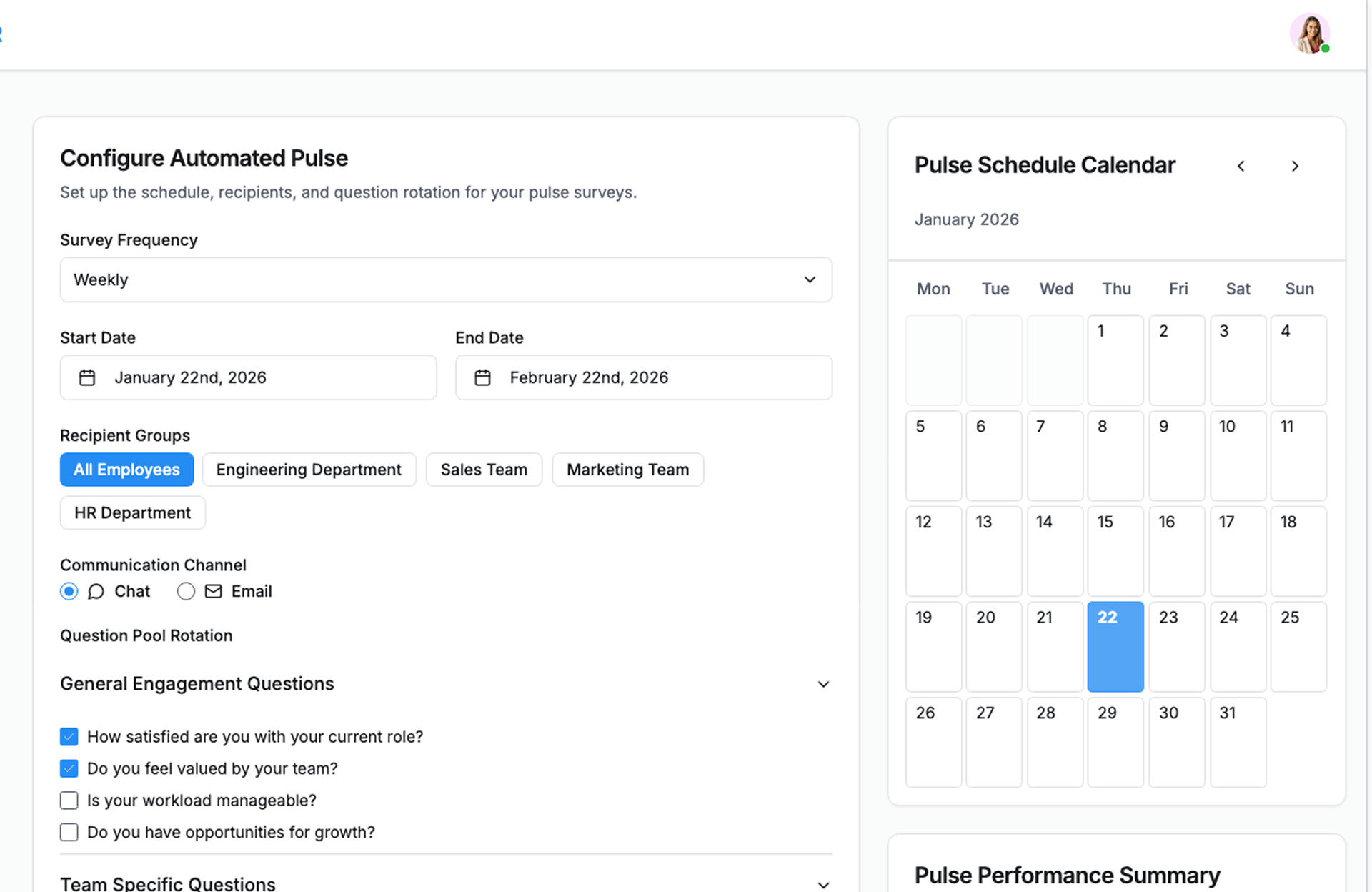 - Automated pulse surveys at configurable intervals