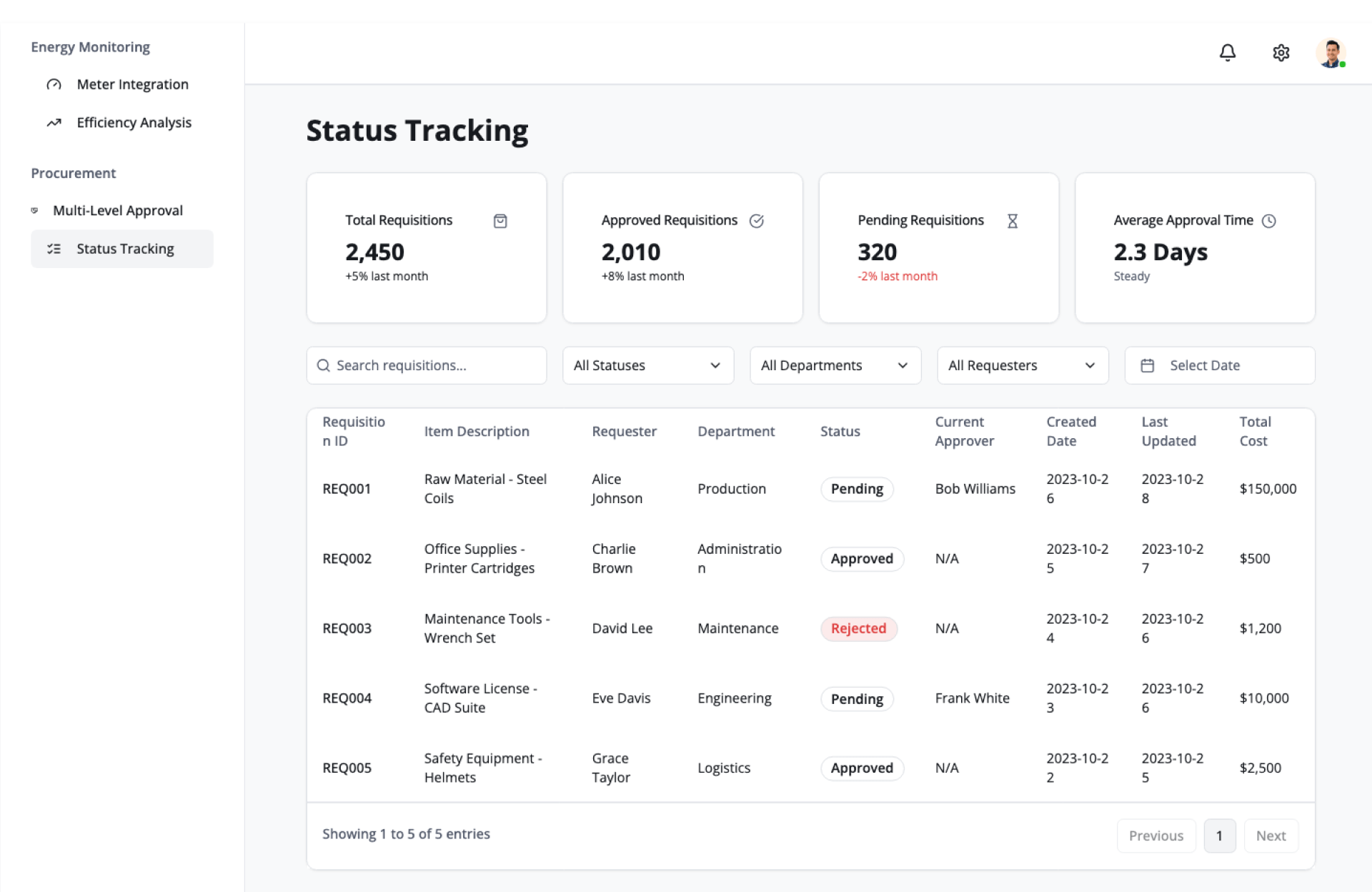 - Centralized energy data view