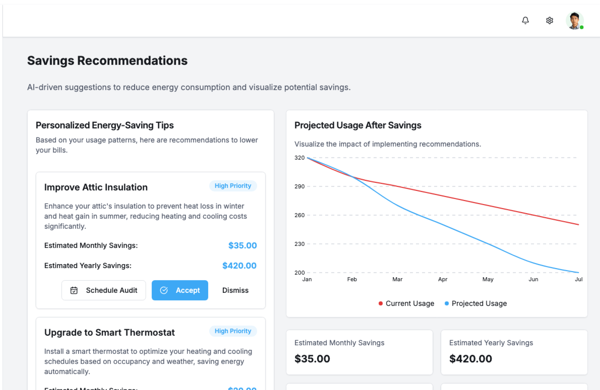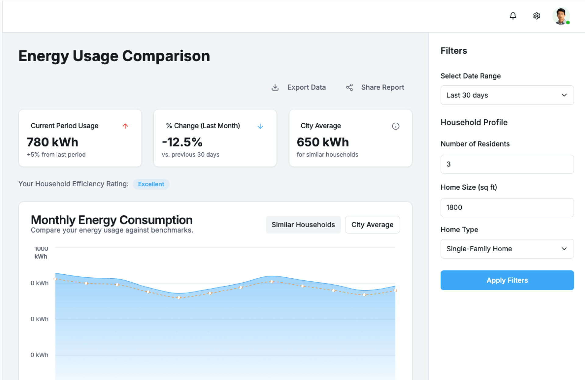 - Side-by-side energy usage comparisons