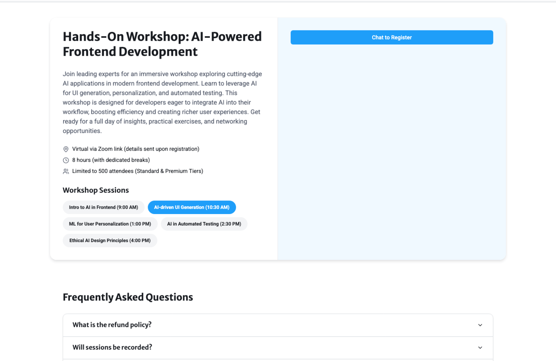 Built for workshops, bootcamps, and training events, it keeps registrations smooth and attendance high.