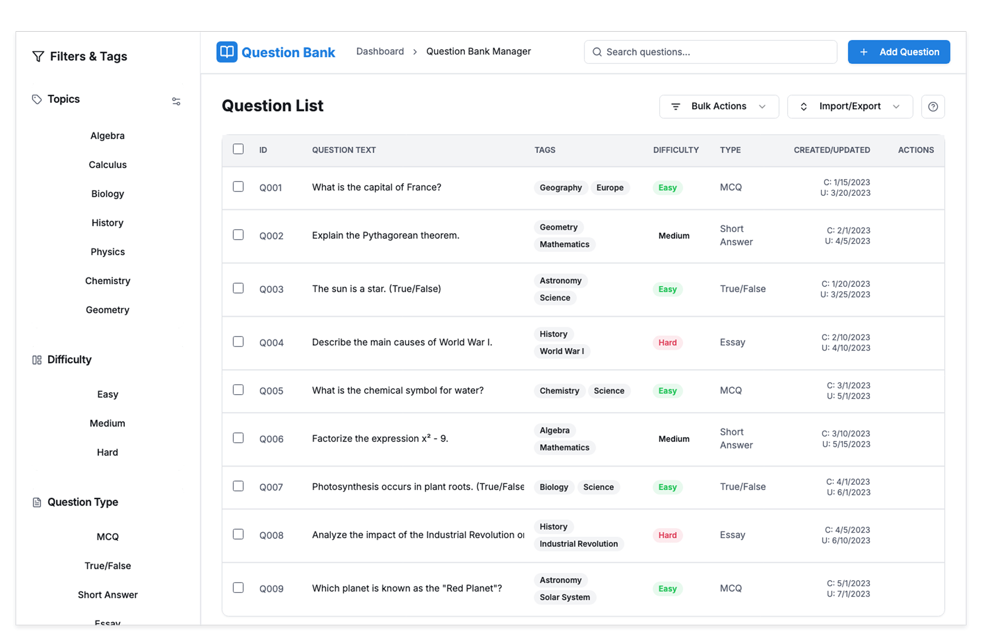Organize, Reuse, and Scale Exam Questions With Ease