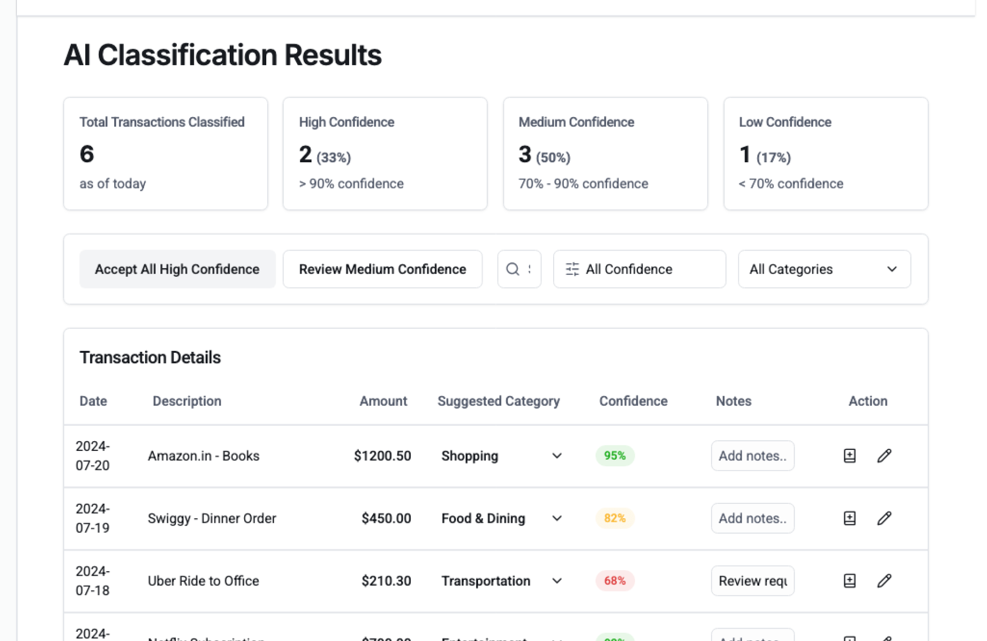 - Review & Adjust – Override or fine-tune categories if needed