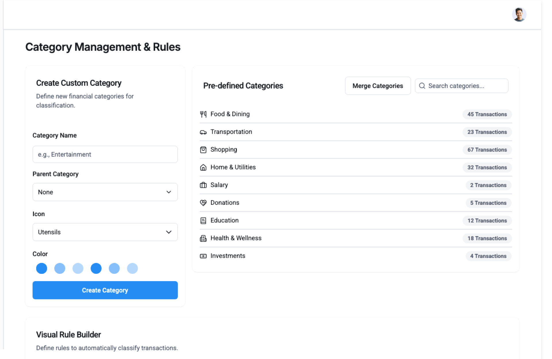- Custom category and rule configuration