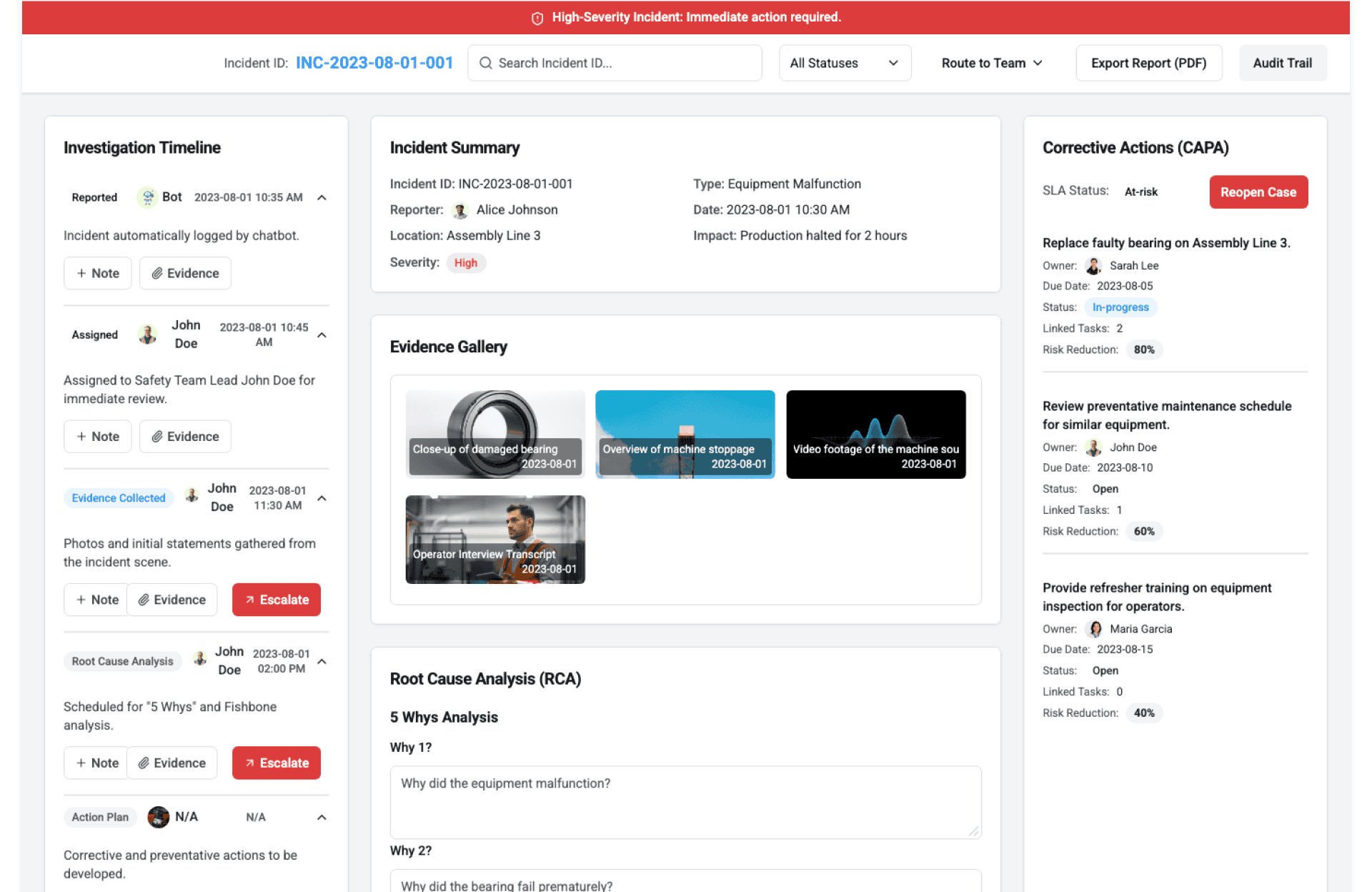- Incident status tracking