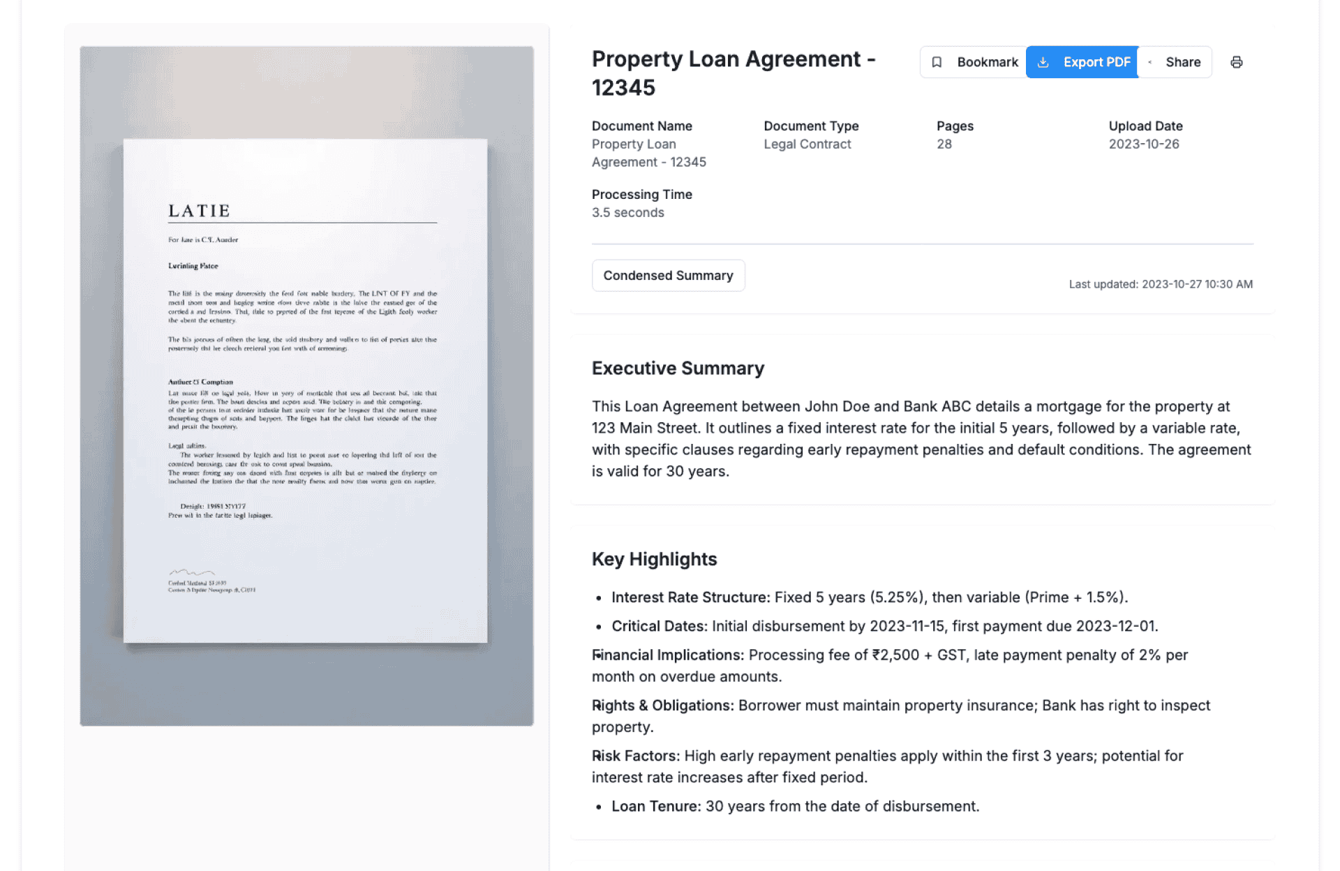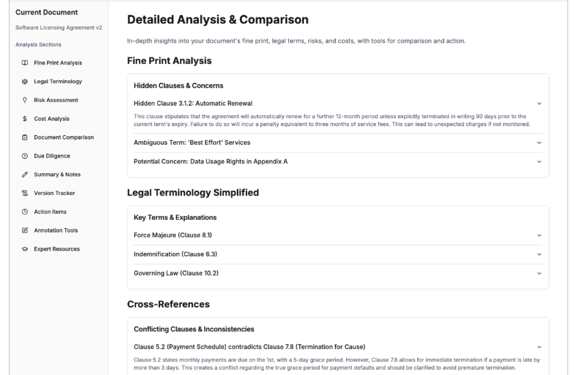 - Highlighting of risks, obligations, and deadlines
