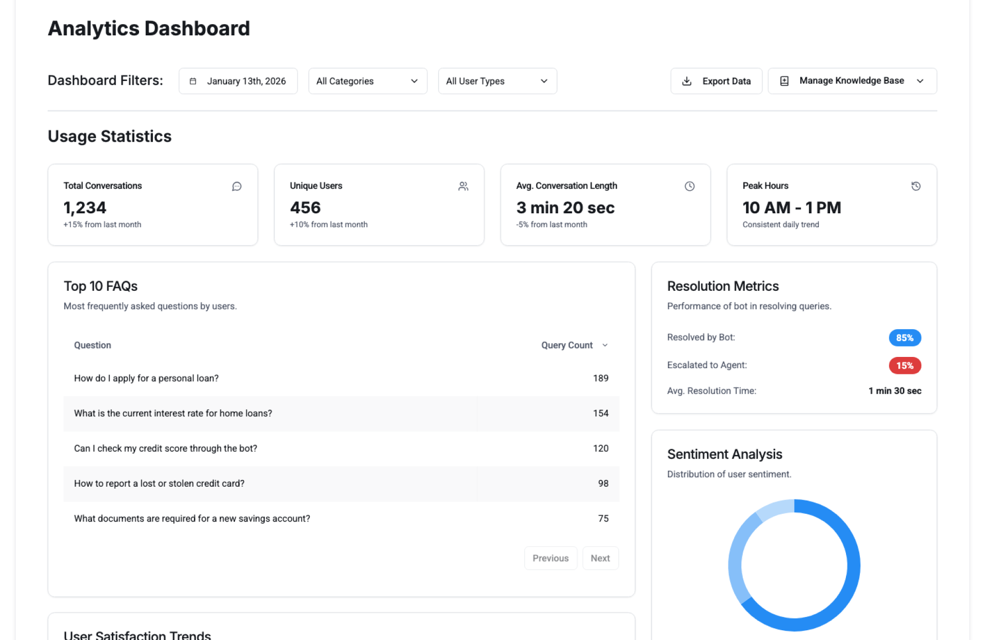 - Upload Finance Knowledge – Add policies, FAQs, and documents