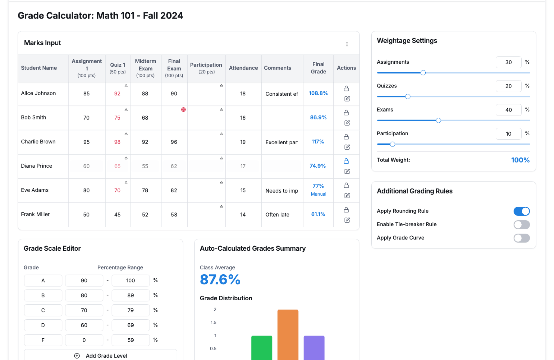 • Calculate Grades – Generate final grades instantly
