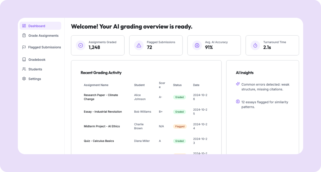 This ensures faster grading cycles, consistent evaluation, and more time for educators to focus on personalized teaching.