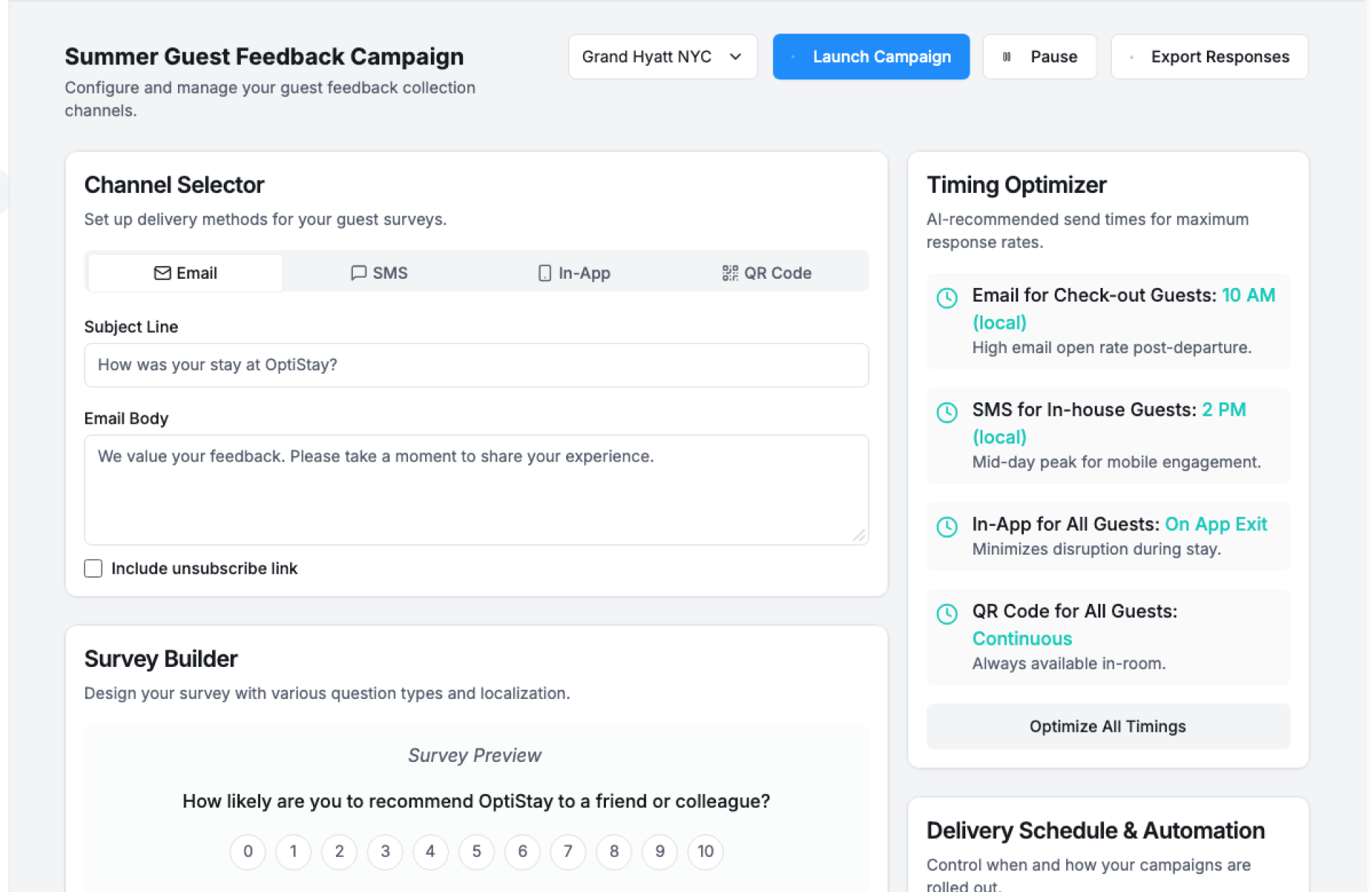 - Send Feedback Request – Trigger surveys post-stay or interaction