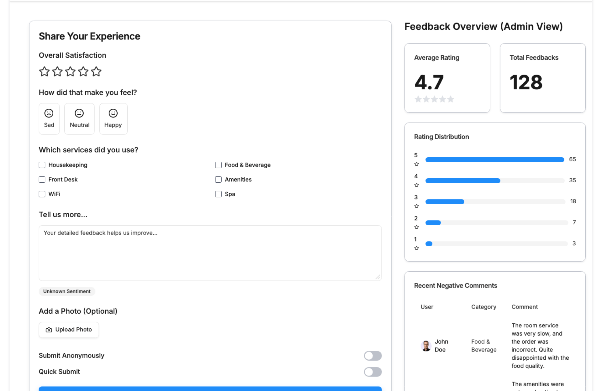 The Guest Feedback Collector by Kriatix helps hospitality and property teams gather structured guest feedback across touchpoints. It centralizes responses, highlights trends, and supports timely action helping improve guest experience and service quality.