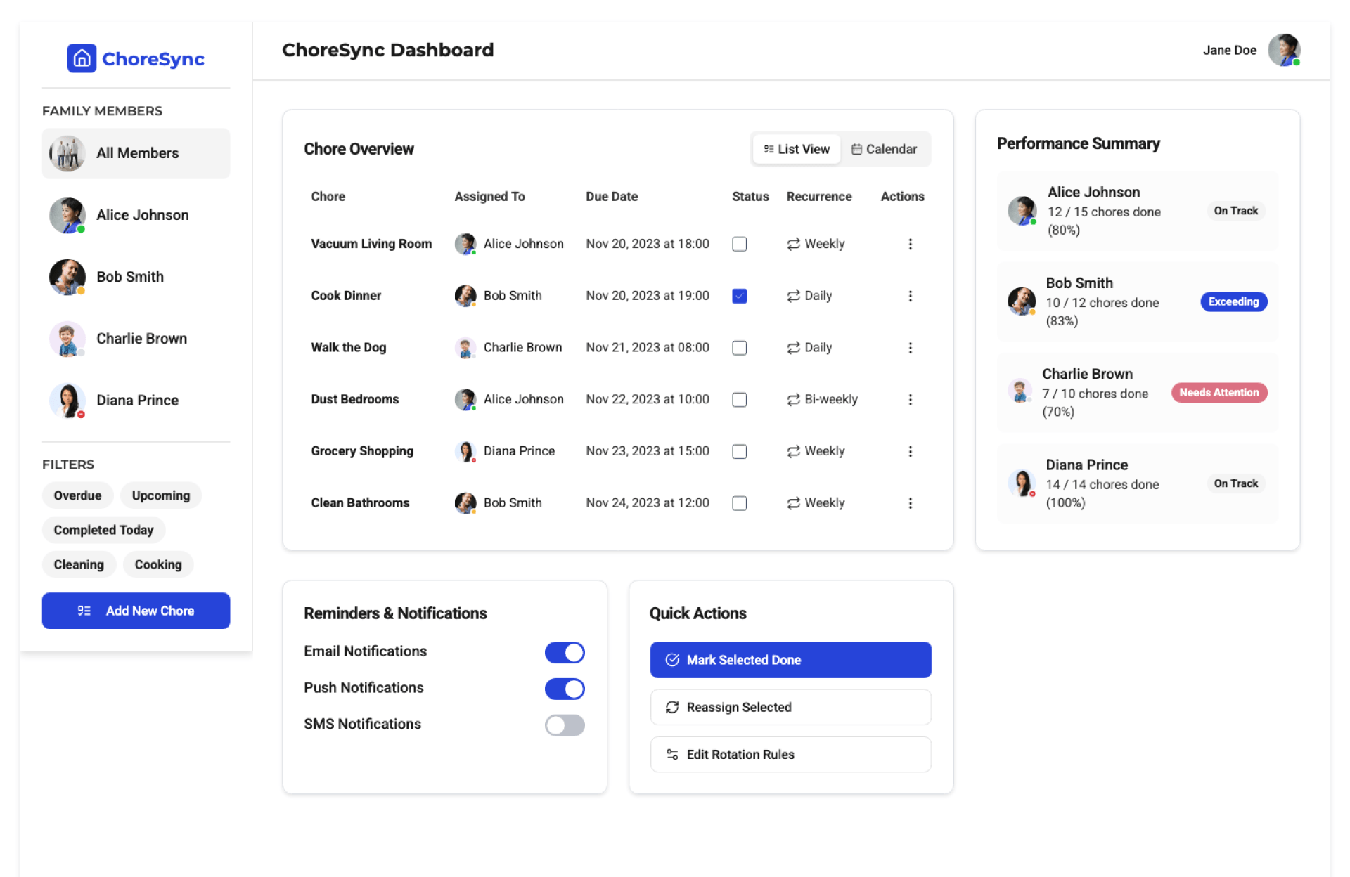- Priority-based and recurring chores