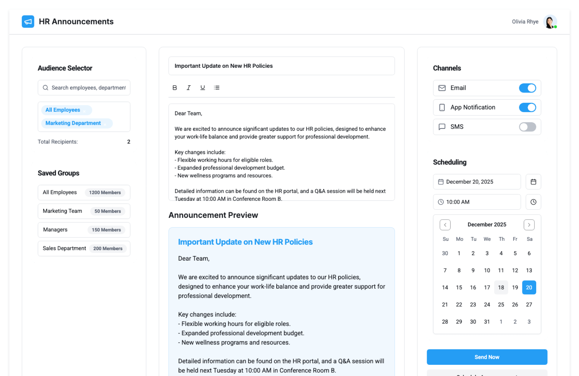 Deliver Company-Wide HR Announcements Instantly & Consistently